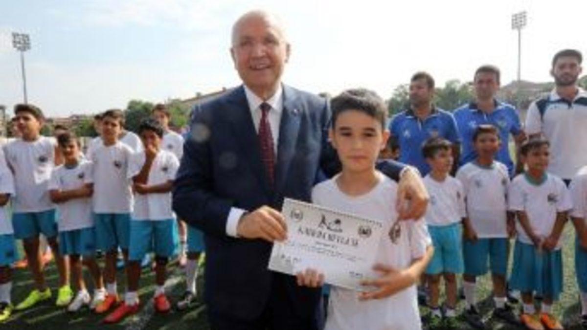 Yenimahalle Belediyesi 2015 Yaz Spor Okulları futbol branşında eğitim alarak yeteneklerini geliştiren 210 kursiyer, sertifika heyecanı yaşadı. Geleceğin yıldız futbolcuları olmaya aday genç yetenekler, sertifikalarını Yenimahalle Belediye Başkanı Fethi Yaşar’ın elinden aldı.Yaz tatillerini Ankara’da geçiren öğrencilerin, dolu dolu ve verimli bir yaz dönemi geçirmeleri amacıyla hizmet veren Yenimahalle Belediyesi Yaz Spor Okulları, futbol branşında 2015 yılı mezunlarını verdi. Uzman eğitmenler gözetiminde kurs alan 6-17 yaş arası 210 öğrenci, kapanış maçında aldıkları eğitimin hakkını verdiklerini gösterdi.KURSİYERLERE TRİBÜNDEN DESTEKYaz Spor Okulları’nın son gününde Yenimahalle Belediye Başkanı Fethi Yaşar, Başkan Vekili Mehmet Kartal, Başkan Yardımcıları Erhan Aras ve Hüseyin Boran ile Yenimahalle Belediyesi Spor Kulübü Başkanı Mesut Bolatcan da geleceğin yıldız futbolcularını yalnız bırakmadı. Tribünden ailelerle birlikte kapanış maçını izleyen Başkan Yaşar, kursta başarılı olarak sertifika almaya hak kazanan öğrencileri tek tek tebrik etti.“MİLLİ SPORCULAR YETİŞTİRMEK HEDEFİNDEYİZ”Çocuklara güzel bir gelecek sunma, onları daha sağlıklı, donamlı bireyler olarak yetiştirme hedefinde olduklarını kaydeden Yaşar, “Yenimahalle, gençlerimize, kadınlarımıza, engellilerimize, yaşlılarımıza her konuda her türlü hizmeti veren tesislere kavuştu. Bugün de o tesislerimizin birinde yaz spor okullarında eğitim alarak hem yeni arkadaşlar edinen hem de yeteneklerini keşfeden çocuklarımıza sertifikalarını veriyoruz. Spor alanında ilçemize büyük yatırımlar yaptık. 3 yeni yüzme havuzu ve spor kompleksi kazandırdık. Bu tesislerden de çocuklarımız, gençlerimiz istifade ediyor. Yine Batıkent’teki mevcut semt sahasını tam donanımlı bir tesis haline getiriyoruz. Ayrıca ilçemize bu dönem devasa bir kapalı spor kompleksi kazandıracağız. Burada çocuklarımız her türlü salon sporunu yapabilecek. Bütün bu tesisler sayesinde belki de geleceğin milli sporcularını yetiştirmek Yenimahalle Belediyesi’ne nasip olacak” dedi.SERTİFİKASINI DEDESİ VERDİYaşar, daha sonra kursiyerlere sertifikalarını dağıttı. Yaz tatilini Yenimahalle Belediyesi Yaz Okulu’nda geçiren Yaşar’ın torunu Kerem de, sertifikasını dedesinin elinden aldı.
