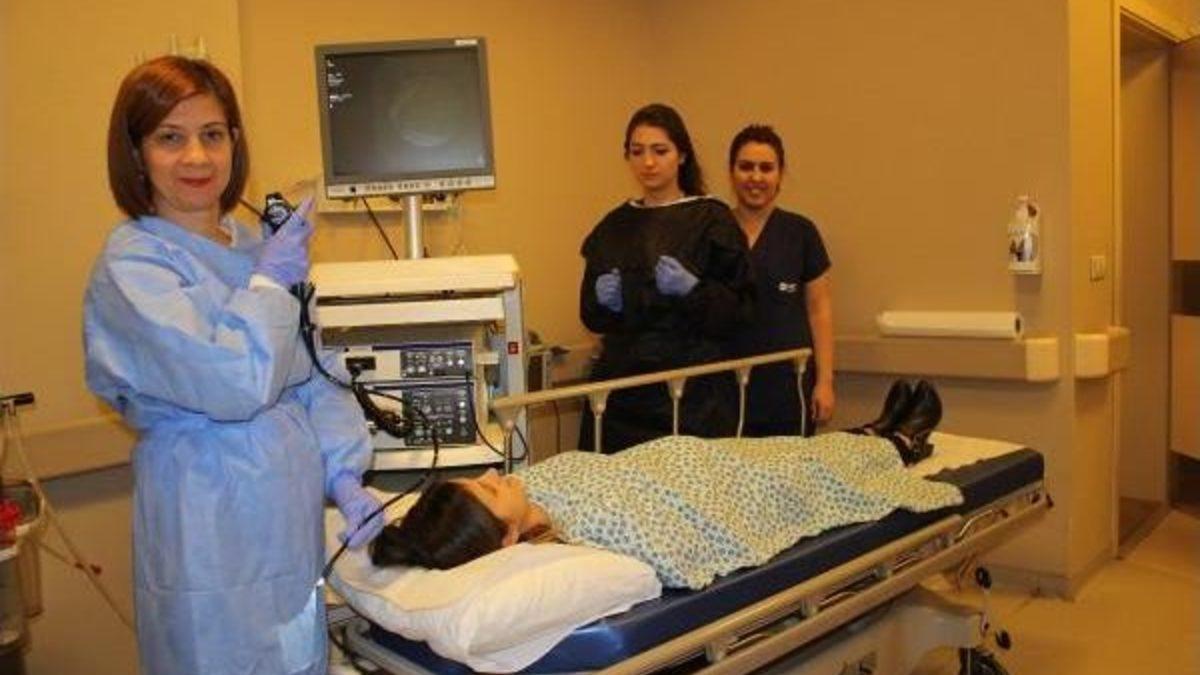 İZMİR, Kent Hastanesi Göğüs Hastalıkları Uzmanı Dr. Deniz Atasever, İzmir'de sadece üç merkezde bulunan ve özel eğitim almış, az sayıdaki uzman tarafından kullanılan EBUS cihazının önemi ve özellikleri hakkında bilgi verdi. EBUS'un solunum yolları, akciğer dokusu, solunum yoluna komşu bulunan lenf bezlerini ve mediasteni "EBUS işlemi sırasında hem görüntüleme, hem de lenf bezlerinden biyopsi alma işlemi yapabiliyoruz. Bu cihaz sayesinde hava yollarına komşu olan lenf bezlerinin çoğunu görüyoruz. Bu lenf bezlerinden biyopsi alabiliyor, akciğer kanserinin doğru evrelenmesini sağlıyoruz. Doğru evreleme, erken tanı, doğru tedavi planlaması yapmamızı sağlıyor. EBUS ile işlem yaparken hastane olarak farkımız, işlem sırasında patoloji uzmanın da bulunması. Patolog materyalin yeterli olup olmadığına karar veriyor. Eskiden bu işlem cerrahi olarak YÜZDE 94-98 BAŞARI