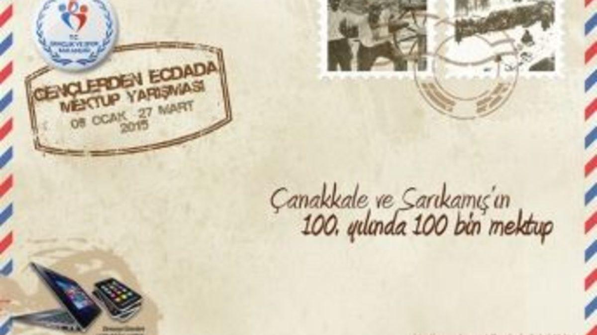 Gençlik ve Spor Bakanlığı, “Gençlerden Ecdada Mektup Yarışması” düzenliyor. Gençlerin tarih bilinci kazanması amacıyla bu yıl üçüncü kez düzenlenen yarışmaya 11-29 yaş grubundakiler, 9 Ocak-27 Mart tarihleri arasında başvurabilecek. “Çanakkale ve Sarıkamış’ın 100. yılında 100 bin Mektup” sloganıyla hayata geçirilen “Gençlerden Ecdada Mektup Yarışması” kapsamında gençler, ecdada seslenebilme imkânı bulacak. Milli ve manevi duyguları canlı tutmayı amaçlayan etkinliğin bir parçası olmak isteyen gençler, mektuplarını 27 Mart tarihine kadar Gençlik ve Spor Bakanlığının internet adresine ulaştırabilecekler. Çanakkale Zaferi ile Sarıkamış Harekâtı konu başlıkları altında düzenlenecek yarışmanın başvuru formu ile yarışmaya ilişkin gerekli bilgilere http://www.gsb.gov.tr/r/GenclerdenEcdadaMektup İnternet sitesinden ulaşılabilecek.11-14 / 15-18 / 19-29 yaş grubu olmak üzere 3 farklı kategoride yapılacak yarışmada Birinciye; Ultrabook ve Bakanlık kitap seti, İkinciye; Dizüstü bilgisayar ve Bakanlık kitap setiÜçüncüye; Akıllı telefon ve Bakanlık kitap seti hediye edilecek. Ayrıca yazdıkları mektupla ilk 100’e giren gençler, Gençlik ve Spor Bakanlığı tarafından düzenlenen projelere katılmada öncelik hakkına sahip olacak. Yarışmanın sonuçları ise www.gsb.gov.tr vehttp://www.gsb.gov.tr/r/GenclerdenEcdadaMektup Sitesinden duyurulacak.