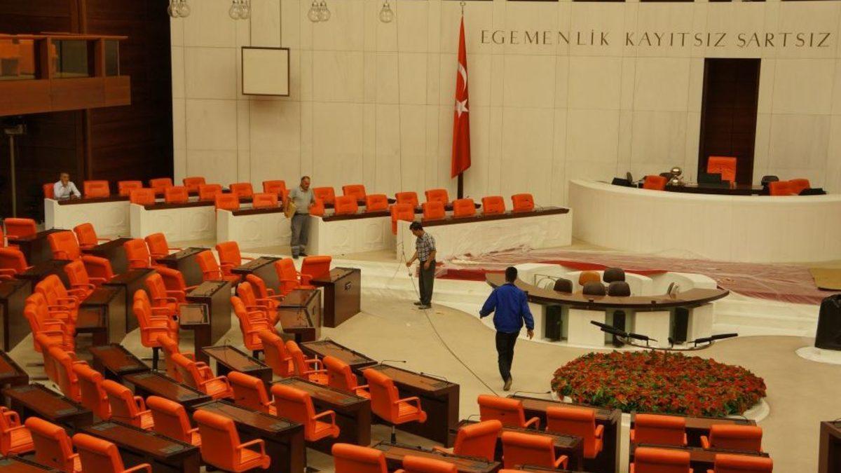 Geçen yasama döneminde sık sık kavga görüntüleri ile gündeme gelen TBMM Genel Kurul salonunda, hummalı bir çalışma başladı. Genel Kurul’da kavgaları tetiklediği belirtilen ışık şiddeti azaltılıyor. TBMM Genel Kurul Salonu’ndaki tadilat çalışmaları devam ediyor. Genel Kurul'da bulunan 16 adet avizenin ışık şiddeti yüzde 25 azaltılırken, 44 adet aydınlatma globunun yükseklikleri de yeniden ayarlanıyor. Ayrıca başkanlık kürsüsü arkasındaki mermer ile diğer mermer yüzeyler matlaştırılıyor. Dinleyici locasının tavanındaki akustik boya yeniliyor. Daha önce bazı vekiller tarafından saldırganlığı artırdığı belirtilen turuncu koltuklarda ise bu sene bir değişiklik düşünülmüyor.
