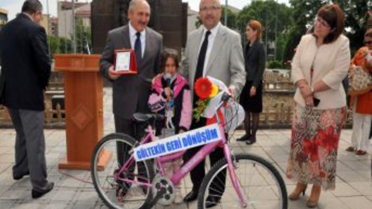 Törende ayrıca, sisteme bireysel olarak büyük destek veren Yüksek Varlı İlköğretim Okulu öğrencisi Aleyna Gürel'e bisiklet hediye edildi. Minik öğrenciye bisikletini teslim eden Belediye Başkanı Burhanettin Çoban, ambalaj atıkların geri kazanımının ekonomiye çok büyük katkılar sağladığını söyledi. 70 mahallede uygulanan geri dönüşüm sisteminin başarıyla sürdürüldüğünü kaydeden Çoban, özverili çalışmalarıyla örnek mahalle seçilen mahallere teşekkür etti.
