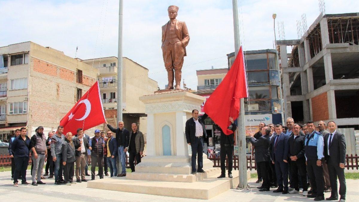 Yıllardır Kent Meydanı’nda eksiliği hissedilen Türk bayrakları 10 Mayıs 2019 yani bugün 12.30’da Türk bayrağı göndere çekilerek meydanın eksikliği giderildi. Yıllar önce yapımı tamamlanıp hizmete açılmasına rağmen Germencik Kent Meydanı’nda Türk bayrağı bulunmuyordu. Bu eksikliğin giderilmesi için harekete geçen Germencik Belediye Meclis Üyesi ve iş adamı Abdullah Acar, meydanda Atatürk büstünün sağına ve soluna birer bayrak direği diktirdi. Dikilen 12 metre yüksekliğindeki direklere, Belediye Başkanı Fuat Öndeş ve Meclis Üyesi Abdullah Acar, Türk bayrakları çekti. Yaklaşık 3,5 metre büyüklüğündeki bayraklar, meydanda dalgalanmaya başladı.