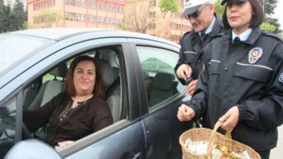 Giresun'da trafik polisleri, "Hayatından Fındığı, Trafikte Hoşgörü ve Saygıyı Eksik Etme" sloganı ile sürücülere Giresun...