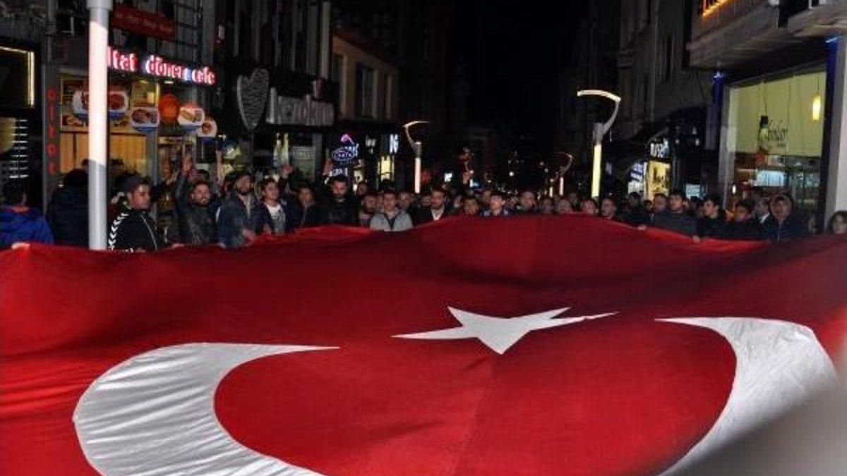 Hakan KABAHASANOĞLU/GİRESUN, Akşam saatlerinde İnönü Caddesi'nde toplanan yaklaşık 100 kişi, Türk Bayrağı açarak yürüyüşe geçti. Gazi Caddesinden Depboy mevkiine, oradan da Atatürk Meydanı'na kadar terör örgütü aleyhine slogan atarak yürüyen grup, otobüslerle geldiği iddia edilenleri beklemek istedi. Ancak grup, polisin böyle bir durumun söz konusu olmadığını söylemesi sonrasında dağıldı.