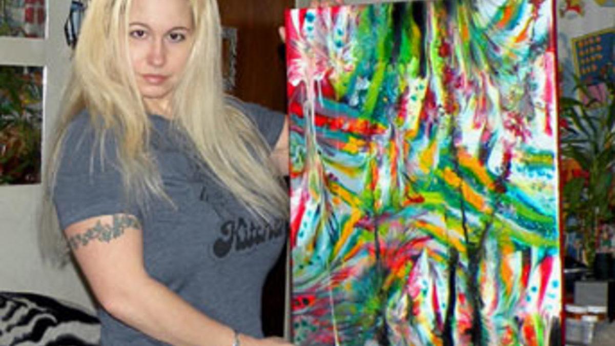 Kira Ayn Varszegi resimlerini ilginç bir yöntemle yapıyor. Fırça yerine büyük göğüslerini kullanıyor