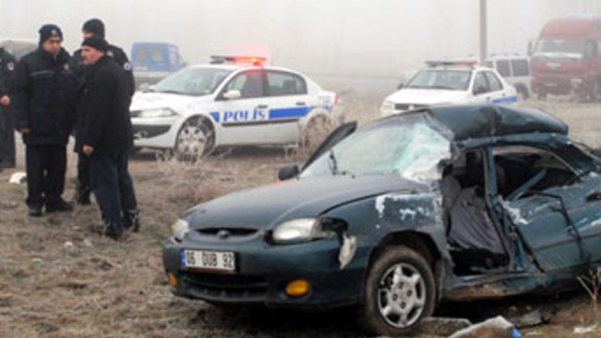 Alınan bilgiye göre, Gölbaşı ilçesi Gerder Mahallesi Örencik Yolu Yurtbey Kavşağı’nda sabah saatlerinde yoğun sis yüzünden, Nazım K. yönetimindeki 06 DRV 46 plakalı kamyon ile Yusuf Şahin kullandığı (51) 06 DUP 92 plakalı otomobil çarpıştı. Kazada otomobil sürücüsü Yusuf Şahin olay yerinde, aynı araçta bulunan oğlu Tevfik Şahin (27) ise kaldırıldığı Gölbaşı Hasvak Devlet Hastanesi'nde hayatını kaybetti. Aynı araçta bulunan Yaşar B. ise Gazi Üniversitesi Tıp Fakültesi Hastanesi’nde tedavi altına alındı. Kamyon sürücüsü Nazım K. polis tarafından gözaltına alındı. Kazayla ilgili soruşturma başlatıldı.