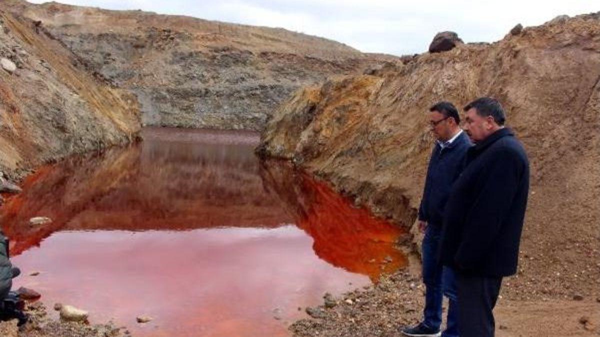 - KAHRAMANMARAŞ'ın Ekinözü İlçesi'nde eski demir madeninde birikip gölet haline gelen su, kırmızı rengini aldı. Ekinözü Belediyesi'nde görevli Jeoloji Mühendisi İbrahim Karaoğlan, suyun kırmızı rengini almasının demir madeninden kaynaklandığını belirterek, "Madendeki demirin oksitlenmesiyle birlikte atmosferde bu renge ulaşıyor" dedi.