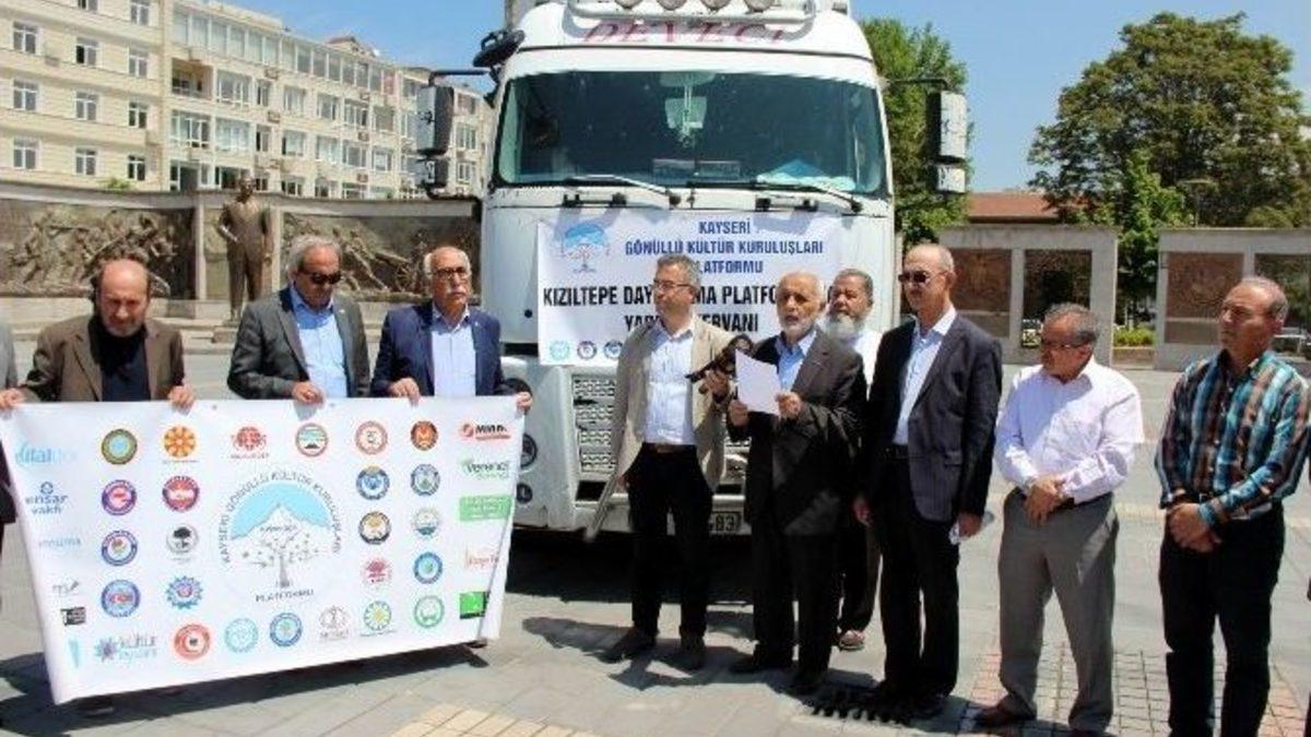 Kayseri Gönüllü Kültür Kuruluşları Platformu ‘Teröre Karşı Dostluk ve Kardeşlik Eli’ kampanyası kapsamında terör mağduru ailelere yardım amacıyla Mardin’in Kızıltepe İlçesi’ne 1 TIR dolusu yardım malzemesi gönderdi.Cumhuriyet Meydanı’nda konu ile ilgili açıklama yapan Kayseri Gönüllü Kültür Kuruluşları Platformu Sözcüsü Ahmet Taş, Güneydoğu’da başlatılan operasyonların ardından bölgeden göç ederek güvenli bölgelerde yaşayan vatandaşların zor şartlar altında hayatta kalma savaşı verdiklerini söyleyerek, “Ülkemizin Güneydoğu Bölgesi’nde Temmuz 2015’ten beri yaşanan PKK saldırıları sonucu başlatılan operasyonlar sırasında çok sayıda bölge insanı bulundukları yerleri terk ederek, saldırıların ve çatışmaların yaşanmadığı güvenli bölgelere göç ettiler. Çatışmalardan kaçan 10 bin terör mağduru çatışmaların yaşanmadığı Mardin Kızıltepe’ye sığınmış olup zor şartlar altında hayatta kalmanın mücadelesini veriyorlar. Kızıltepe Kardeşlik ve Dayanışma Platformu Kayseri’mizden yardım talep ederek şehirlerine sığınan mağdur ve mazlumların imdadına yetişmemizi talep etmişlerdir. Kayseri Gönüllü Kültür Kuruluşları Platformu’na bağlı Diyanet-Sen, Hizmet-İş Sendikası, Mazlum-Der, Bem-Bir-Sen, Miraç Kültür Merkezi, Darülaceze Vakfı, Çelik-İş Sendikası, Eğitim-Bir-Sen Kayseri Şubesi ve Hilal-Der öncülüğünde başlatılan, Melikgazi Belediyesi ve İHH Kayseri Yardım Derneği’mizin de katkılarıyla hazırlanan, içinde temel gıda maddeleri, giysi, yatak, kanepe ve patatesten oluşan yardım malzemelerinin bulunduğu yardım TIR’ımızın üçüncüsünü Kızıltepe’ye gönderiyoruz” dedi.Kayseri Gönüllü Kültür Kuruluşları Platformu olarak mağdur ve mazlumun yanında olduklarını söyleyen Ahmet Taş ve beraberindekiler, yardım TIR’ını Kızıltepe’ye uğurladı.
