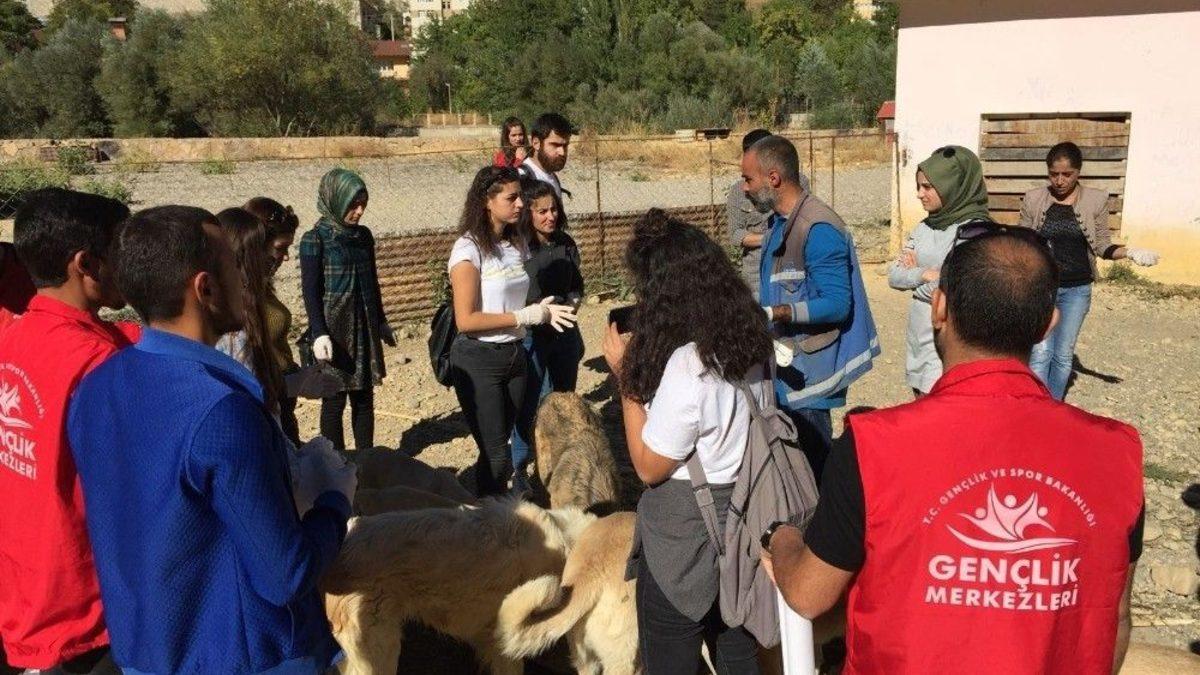 Tunceli’de üniversiteli gençler, köpek barınağını ziyaret ederek hayvanları besledi.Tunceli Gençlik Merkezi üyeleri ile Munzur Üniversitesi gönüllü öğrencileri köpek barınağını ziyaret ederek sokak hayvanlarını besledi. Tunceli Gençlik Merkezi sorumlusu Erbil Ol, sokak hayvanlarına yönelik farkındalık oluşturmak amacıyla gönüllü öğrencilerle birlikte köpek barınağını ziyaret ettiklerini ifade etti.Hem sokak hayvanlarının beslenmesine katkı sunmak hem de gençlerin sokak hayvanlarına yönelik duyarlılıklarını artırmak amacıyla zaman zaman böyle çalışmalar yaptıklarını dile getiren Ol, barınağın asıl yükünü Cihan Karaca adlı vatandaşın çektiğini, kendi imkanlarıyla şehrin tüm sokak köpeklerine sahip çıktığını belirtti.Barınağa karşı daha fazla duyarlı olunması çağrısında bulunan Ol “Çeşitli yerlerden topladığımız yemek artıklarını barınaktaki hayvanlarla paylaşarak onların bir günlük de olsa karınlarını doyurmasını sağladık. Şuan ziyaret ettiğimiz barınak resmi olarak kurulmadığı için kurumların desteğinden de yararlanamıyor. Cihan Karaca, kendi imkanlarıyla burada bir şeyler yapmaya çalışıyor ancak tek kişinin şehrin tüm hayvanlarına yetişmesi mümkün değil. Öncelikle bir veterinere ve barınakta Cihan abiye destek olacak kişilere ihtiyaç var. Bizler elimizden geleni yapacağız"dedi.