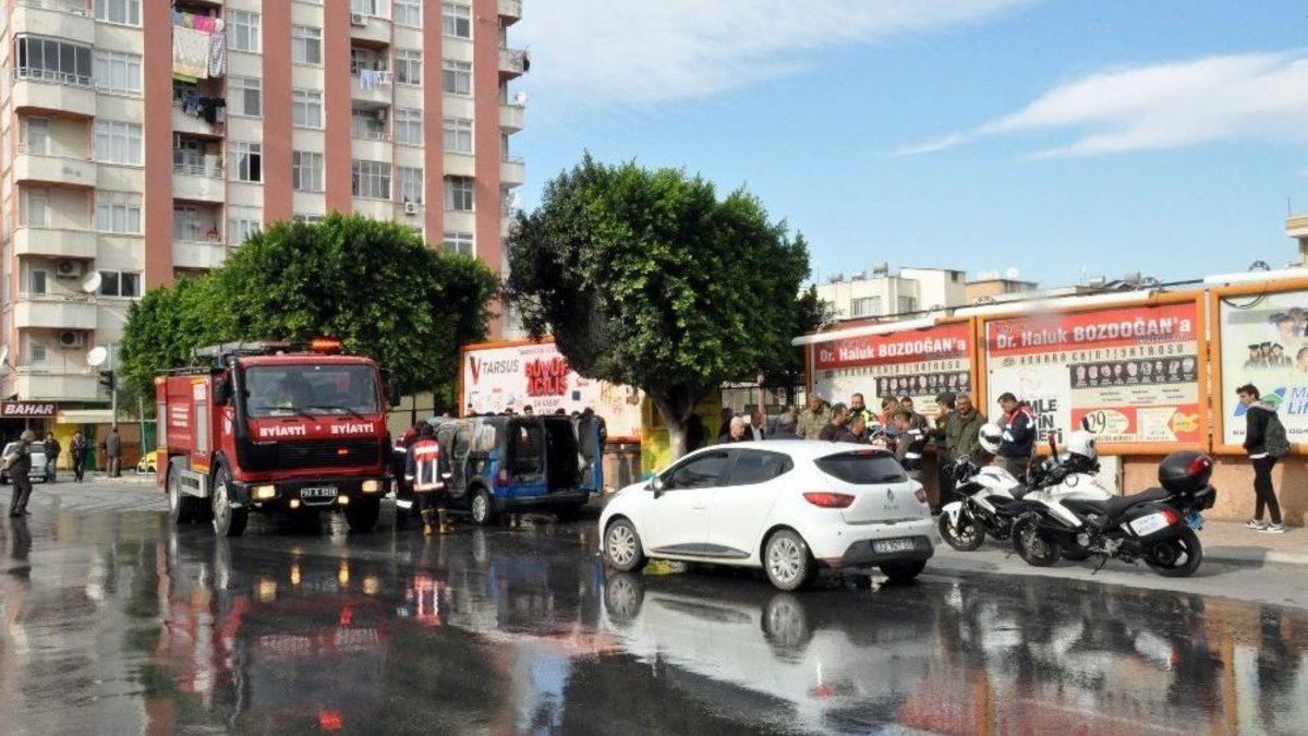 Mersin’in Tarsus ilçesinde, İlçe Jandarma Komutanlığına ait araç seyir halindeyken alev aldı. Alevler vatandaşların yaptıkları müdahaleye rağmen söndürülemeyince araç tamamen hurdaya döndü.Alınan bilgiye göre, saat 13.10 sıralarında bir göreve gitmek üzere içinde 2 askeri personelin bulunduğu 33 JAA 053 plakalı araç, Atatürk Bulvarı’ndan Cengiz Topel Lisesi önünde seyir halindeyken, motor kısmından dumanlar yükselince aracı kullanan sürücü sağa yanaşarak durdu. Bir anda parlayan alevler jandarmaya ait aracı sarınca içindeki personel kendilerini son anda dışarı attı.Çevredeki vatandaşlar durumu itfaiyeye bildirirken, bir yandan yangın söndürme tüpleri ile yanan askeri aracı söndürmeye çalıştılar. Aracı saran alevler yangın söndürme tüpleriyle yapılan müdahale ile biraz olsun küçülse de, bir anda yeniden parlayarak aracı ve içindeki elektronik cihaz ve telsizleri sardı.Olay yerine gelen Mersin Büyükşehir Belediyesi Tarsus Grup Amirliği itfaiye ekibi, yaptığı çalışma sonucu alevleri kontrol altına aldı. Yangının söndürülerek kontrol altına alınmasının arsından araç içinden yanmış halde 1 adet G 3 piyade tüfeği çıkarıldı.Yangının elektrik aksamındaki kısa devrenin motor kısmındaki yanıcı maddeleri tutuşturması ve daha sonradan aracı tamamen sarmasından kaynaklandığı öğrenildi.Yangın sırasında bazı vatandaşların cep telefonlarıyla görüntü alma çabaları da gözden kaçamadı.