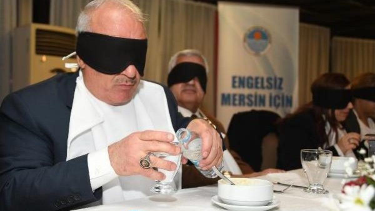 Mustafa ERCAN/MERSİN, Etkinliğe Vali Yardımcısı Cezmi Türk Göçer, Büyükşehir Belediye Başkanı MHP'li Burhanettin Kocamaz, KKTC Mersin Konsolosu Ayşen Volkan İnanıroğlu ve davetliler katıldı. Yemekte davetliler ile beraber gözlerine siyah bant takarak yemek yiyen Başkan Kocamaz, etkinliğin görme engelli bireylerin yaşadığı zorlukları anlamak ve onların hayatını kolaylaştıracak çözümler üretmek konusunda anlamlı bir çalışma olduğunu söyledi.