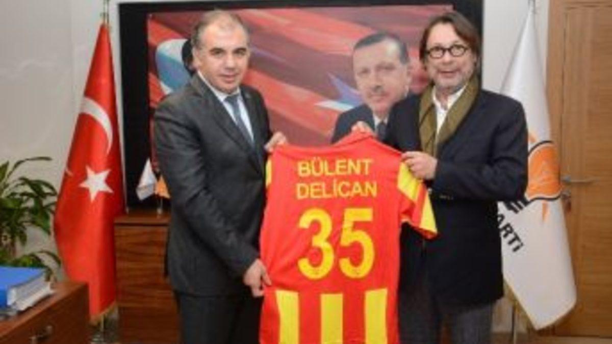 Göztepe Spor Kulübü Başkanı Mehmet Sepil ve Göztepe Spor Kulübü 2. Başkanı Fatih Dalan AK Parti İzmir İl Başkanı Bülent Delican’ı ziyaret etti.AK Parti İzmir İl Başkanı Bülent Delican’ı makamında ziyaret eden Göztepe Spor Kulübü Başkanı Mehmet Sepil yaptıkları ziyarette İzmir’in büyük bir stada kavuşmasının önemine dikkat çekerken, AK Parti İzmir İl Başkanı Bülent Delican İzmir’e yapılacak statlarla ilgili süreci en kısa sürede sonlandırılacağını vurguladı.Göztepe Başkanı Mehmet Sepil ve 2. Başkan Fatih Dalan ile Göztepe Stadı ile ilgili bir istişare toplantısı yaptıklarını söyleyen AK Parti İzmir İl Başkanı Bülent Delican, “Oldukça verimli bir toplantı gerçekleştirdik. İnşallah sevgili Göztepeliler’e en kısa zamanda stat yapımının başlaması için müjdeli haberi vereceğiz. Bizim için Göztepe çok önemli bir kulüp, İzmir’in en önemli spor kulüplerinden bir tanesi. Göztepeliler’e hizmet, bizim olmazsa olmazlarımızdan. İzmir’in Avrupa’da, Süper Lig’de top koşturma potansiyeli olan takımlarının her türlü isteğini yapmak bizim boynumuzun borcu. Bu konuda elimizden gelini bu zaman kadar yaptık, yapmaya da devam edeceğiz. En kısa sürede de bu süreci sonlandıracağız” diye konuştu.Göztepe Kulübü Başkanı Mehmet Sepil, AK Parti İzmir İl Başkanı Bülent Delican’ı hem tebrik, hem de Göztepe Spor Kulübü’nün ihtiyacı olan büyük stat için ziyaret ettiklerini belirterek, “Göztepe Spor Kulübünün büyük bir stada ihtiyacı var. Bizde Sayın Başkanımızdan konuyla ilgili yardım istemek üzere ziyaret ettik. Sağ olsun başkanımız bizi dinledi. Göztepe’nin en hızlı şekilde, İzmir için stada kavuşmasının çok önemli olduğunu karşılıklı olarak kendisiyle görüştük. O da bize her türlü yardımı yapacağını söyledi. Kendisine çok teşekkür ediyoruz” dedi.Ziyaret sonunda Göztepe Başkanı Mehmet Sepil, İl Başkanı Delican’a üzerinde isminin yazılı olduğu 35 numaralı formayı hediye etti.