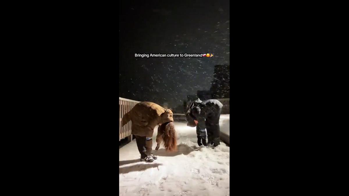Grönlandlılar çektikleri bu videoları 'Amerikan kültürünü Grönland'a getiriyoruz' notuyla paylaştı.
