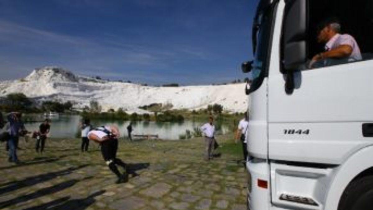 Güçlerini Pamukkale'de Tır Çekerek Gösterdiler