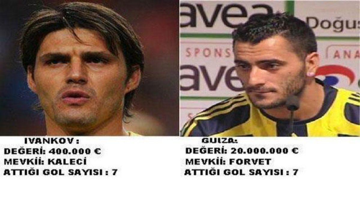 Mesela iki sezon önce İspanya gol kralı adı altında ülkemize gelen ve Fenerbahçe'nin yaklaşık 20 milyon Euro verdiği Daniel Güiza'nın durumu ortada. Net gollük pozisyonlarda acemi bir çaylak görüntüsü veren ve kaçırdığı gollerle taraftarına saçbaş yoldurtan Güiza'yla bu işlerin olmayacağı apaçık ortada. Keza bu sezon attığı gol sayısı 7 ve Bursaspor'un kalecisi İvankov'un da rakip filelere bıraktığı gol sayısı 7. Ve İvankov'un kulübünden aldığı para ise 400 bin Euro.