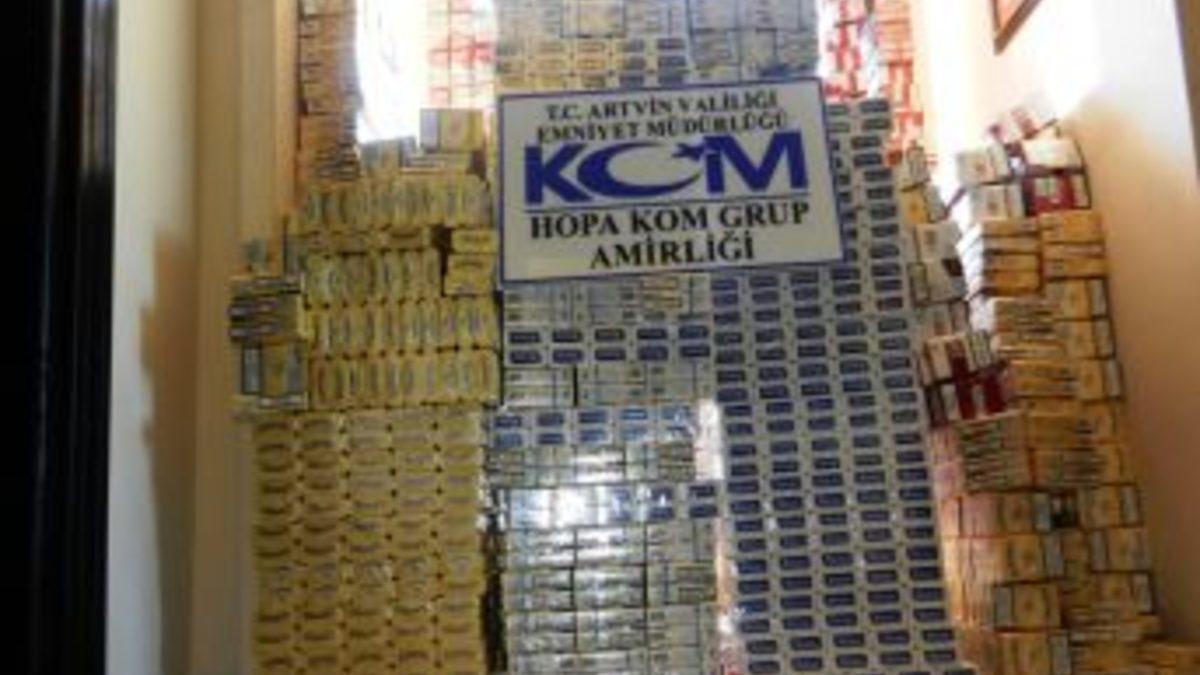 Artvin'in Hopa ilçesi Kemalpaşa beldesinde, 8 bin 640 paket gümrük kaçağı sigara ele geçirildiği bildirildi. Olayla ilgili 2 kişi hakkında yasal işlem yapıldı.