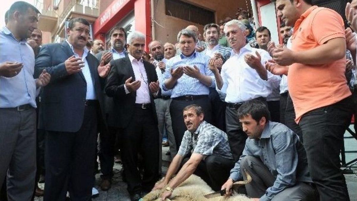 Gümüşhane’de Cumhurbaşkanı adayı ve Başbakan Recep Tayyip Erdoğan’ın vekaleti ile AK Parti Gümüşhane İl Başkanlığı tarafından kurban kesildi, bağış kampanyasına katkıda bulunuldu.Parti binası önünde kalabalık bir partili katılımı ile gerçekleştirilen programa AK Parti Gümüşhane Milletvekili Feramuz Üstün, 22. dönem Milletvekili Sabri Varan, Kelkit Belediye Başkanı Ünal Yılmaz, AK Parti İl Başkanı Hakkı Gündüz, ilçe başkanları, parti yöneticileri ve partililer katıldı.Burada konuşan Milletvekili Üstün, bugün Türkiye’nin 81 ilinde Başbakan Erdoğan’ın İl Başkanlarına verdiği vekalet neticesinde kurban kesildiğini hatırlatarak, “İnşallah 10 Ağustos Cumhurbaşkanlığı seçimleri memleketimiz için hayırlı olur.” dedi.Ziraat Bankası'nda açılan bağış hesaplarına destek konusuna da değinen Milletvekili Üstün, amacın para yatırmak olmadığını belirterek, “Hz. İbrahim’in ateşe atıldığında o ateşi söndürmek için gagalarında su taşıyan kuşlar misali saflarımızı ve durduğumuz yeri belli etmeliyiz. Bağışın miktarı ve meblağı önemli değil. Önemli olan destek olmaktır” diye konuştu.AK Parti İl Başkanı Hakkı Gündüz de Başbakan Erdoğan’ın vekaleti olan kurbanını kestiklerini belirterek, “Allah kabul eylesin. Allah yolumuzu açık eylesin” temennilerinde bulundu.Yapılan duanın ardından tekbirler eşliğinde kurban kesildikten sonra partililer kalabalık bir heyetle Ziraat Bankasında açılan hesaplardan Cumhurbaşkanı adayı ve Başbakan Recep Tayyip Erdoğan’ın kampanyalarına destek olmak için bağışta bulundu.