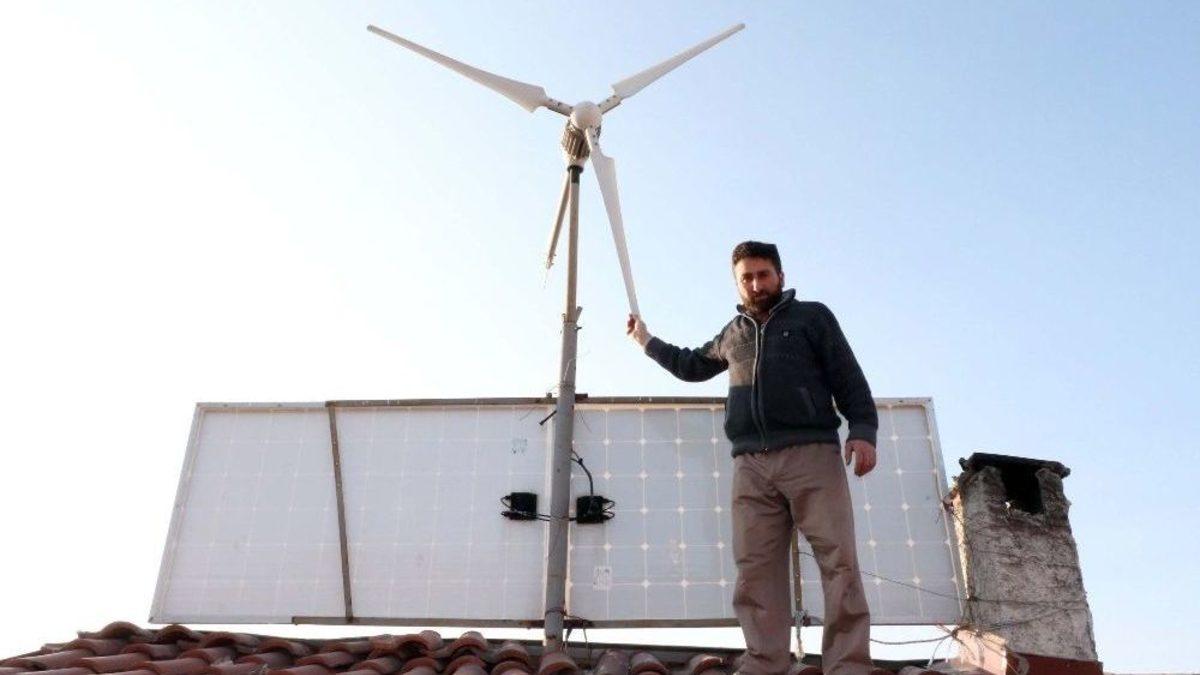 Yozgat’ta 3 yıl önce iş yerinin çatısına kurduğu güneş paneli ve rüzgar gülü sayesinde elektrik ihtiyacını karşılayan Süleyman Nazlı isimli vatandaş, kurduğu bu sistem sayesinde elektrik maliyetini yüzde 80 düşürdü.Yozgat’ta hırdavat dükkanının çatısına kurduğu güneş paneli ve rüzgar gülü sayesinde kendi elektriğini kendisi üreten Süleyman Nazlı, dükkanının elektrik faturasının çok gelmesi nedeniyle farklı enerji kaynaklarına yöneldiğini söyledi.Güneş enerji sistemi ve rüzgar gülü sayesinde elektrik maliyetini yüzde 80 oranında düşüren Nazlı, “Elektrik faturalarımız fazla geliyordu. Araştırdım ve güneş panellini denedim. Faturaların yüzde 80 oranında düştüğünü gördüm. Eğer güneş panelini ve akülerini çoğaltırsam yüzde yüz verim alacağımı düşünüyorum. Önceden elektrik faturalarına 50 -60 TL ödüyordum şu anda ise 15 TL ancak ödüyorum” dedi.Üç yıl önce güneş enerji sistemi ve rüzgar gülünü iş yerinin çatısına kurduğunu söyleyen Nazlı, “Sistemi test ettim ve başarılı oldum. Sistem bize 8 bin 500 TL mal oldu. Bu sistemi gören özellikle köydeki vatandaşlar bizden talep ediyor. Elektrik ihtiyacı olan yerlerde ağıllarda, su kuyularında, tarla sulamalarında güneş enerji sistemini kullanıyorlar. Herkesin bütün ihtiyaçlarını karşılayacak derecede vatandaşlarımıza yardımcı oluyoruz. Güneş panelinin bayiliğini de aldık. Bu sistemin kurulumunu isteyene yapıyoruz” şeklinde konuştu.Dükkanında bulunan elektronik eşyaların tamamının elektriğini bu sistem sayesinde sağladığını dile getiren Nazlı, rüzgar gülünün bin 500 kilo watt güneş panellerinin ise 500 kilo watt olmak üzere toplam 2 bin kilo watt enerji ürettiğini de sözlerine ekledi.