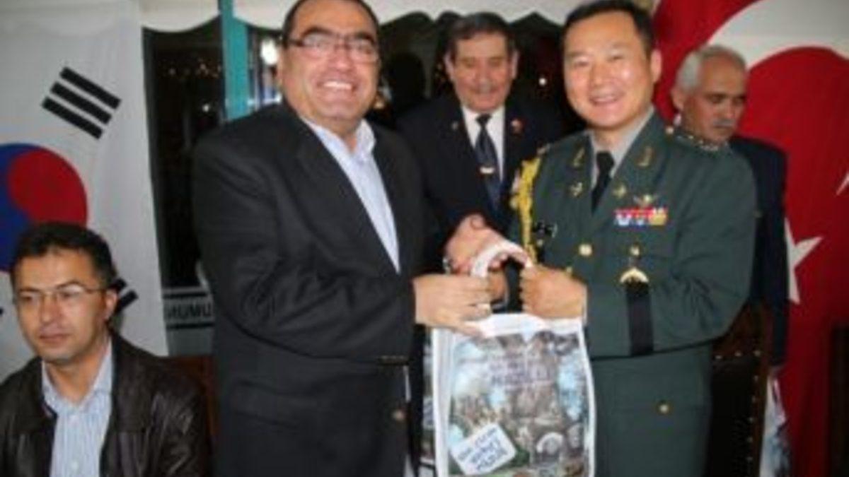 Güney Kore Cumhuriyeti Büyükelçiliği Askeri Ataşesi Kurmay Albay Jooseong Han ve eşi, Nazilli’ye gelerek Kore Gazilerinin torunlarına burs ve sertifika verdi.Nazilli Muharip Gaziler Derneği tarafından Kore Gazileri onuruna verilen yemeğe Türkiye genelinde 68 şube ve 47 temsilciliği bulunan Türkiye Muharip Gaziler Derneği Genel Merkezi Dış İlişkiler Başkanı Sabahattin Ünlüsoy, Mali Şube Başkanı İlyas Yücel ve Teşkilat Başkanı Metin Çınartaş’da eşlik ederken Nazilli Kaymakamı Mehmet Okur ve Garnizon Komutanı Albay Ekrem Turan başta olmak üzere Nazilli Belediye Başkanı Haluk Alıcık, Sosyal Hizmet Merkezi Müdürü Bülent Dağ, Nazilli Ticaret Odası Başkanı Nuri Arslan, Nazilli Şehit Aileleri Derneği Başkanı Jale Keskin, Türkiye Muharip Gaziler Derneği Nazilli Şube Başkanı Hasan Karataş ile gazi ve gazi yakınları katıldı.İki devletin Milli Marşlarının okunmasının ardından verilen yemekte konuşan Kore Askeri Ataşesi Jooseong Han, Türklerin her zaman kalplerinde ayrı bir yeri olduğunu ve Türkiye ile aralarında oluşan gönül bağının sonsuza dek süreceğini söyledi. Bu bağı daha da kuvvetlendirmek için Türkiye’nin neresinde olursa olsun Kore’de canları pahasına savaşan ve gazi olarak geri dönen Türk Askerlerini tespit ettiklerini ve onların torunlarına eğitimlerinde kullanmak üzere burs sağladıklarını ifade etti.Güney Kore Ankara Büyükelçiliği Ataşesi Kurmay Albay Jooseong Han konuşmasının devamında Eğitime çok önem verdiklerini belirterek “Kore’de savaştan sonra hiçbir şey kalmadı. Topraklarımız, dağlarımız kurudu, yeraltında hiçbir şey yoktu. Biz bir şeyleri yeniden var etmek için çok çalıştık. Çünkü çalışmaktan başka çaremiz yoktu. Eğitime çok önem verdik, çocuklarımızın eğitimli bilgili olmasına çok önem verdik. Çünkü gördük ki geçmişte eğitimsizlik ve cehalet yüzünden yoksulluk içinde yaşayan bir ülke bir savaş ile yok edilme noktasına gelmişti. Bizler Kore’de bizim için savaşan, Canını ortaya koyan Kore’nin oluşmasında, bugünlerine gelmesinde emeği geçen Türk askerine şükranlarımızı sunuyoruz. Bunu çok iyi biliyoruz ve farkındayız. Burada olmaktan dolayı son derece mutluyuz. Biz çok iyi biliyoruz ki gazilerimiz kahramanca savaştı. İyi biliyoruz ki onlar olmasalardı şimdi ki gibi gelişmiş bir ülke olamazdık. Koreliler onun için her zaman Kore gazilerini kalplerinde şükranla ve minnetle yaşatacaktır” dedi.Türkiye Muharip Gaziler Derneği olarak Aydın genelinde 107 Kore gazisi ve eşinden 96’sına madalyalarını ulaştırdıklarını hatırlatan Nazilli Şube Başkanı Hasan Karataş; “Güney Kore Ankara Büyükelçiliği ile diyaloglarımız her zaman devam edecektir. Kore gazilerimizi unutmadıklarını gösterdiler. Daha önce de Askeri Ataşemiz bizzat gelerek bire bir Kore gazilerimize gerekli yardımları yaparak kendi elleri ile gazilerimizin torunlarına eğitim bursu vermiş ve gazilerimize madalyalarını dağıtmıştı. Kendileri her daim minnettarlıklarını dile getirmişlerdir ve bugün de bunun en güzel örneğidir” dedi.Yemek sonunda Nazilli’deki 5 Kore Gazi torununa Kore Büyükelçiliği olarak eğitim bursu ve sertifika da veren Albay Han, gecede vefat eden Kore gazileri Mustafa Gülcan’ın madalyasını eşi Hayriye Gülcan’a, Kamil Arslan’ın madalyasını kızı Adile Arslan’a, Nuri Erişken’in madalyasını eşi Zühra Erişken’e ve Nuri Baki’nin madalyası eşi Kadriye Baki’ye takdim etti. Albay Han tarafından Gazilere hatıra olması dileği ile hediyeler takdim edilirken, Türkiye Muharip Gaziler Derneği Genel Merkezi tarafından Kaymakam Mehmet Okur ve Belediye Başkanı Haluk Alıcık’a desteklerinden dolayı plaket verildi.