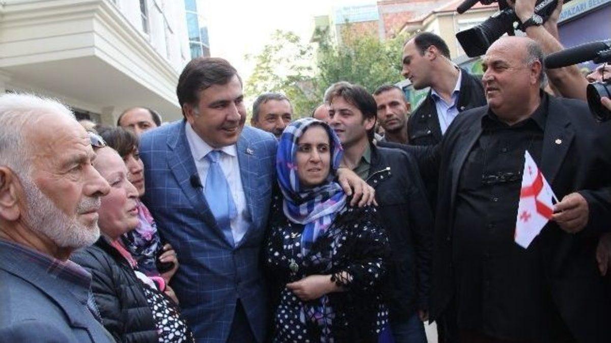 Gürcistan Devlet Başkanı Mikhail Saakaşvili, daha önce ertelenen Sakarya ziyaretinde büyük bir coşkuyla karşılandı. Saakaşvili, Adapazarı Orhangazi Kültür Merkezi’nde gerçekleştirilen törenle çifte vatandaşlık hakkı elde eden Türkiye vatandaşlarına Gürcistan vatandaşlığı beratlarını verdi.Özel bir program nedeniyle Sakarya’ya gelen Gürcistan Devlet Başkanı Mikhail Saakaşvili, Adapazarı Orhangazi Kültür Merkezinde Sakaryalılarla buluştu. Ellerinde Gürcistan bayrakları ile Gürcü devlet daşkanını karşılayan Sakaryalılar coşkulu tezahüratlarda bulundu.Programda çifte vatandaşlık hakkı elde eden Türkiye vatandaşlarına Gürcistan vatandaşlığı beratlarını veren Gürcistan Devlet Başkanı Mihail Saakaşvili, “Çevremizde güçsüz devlet istemiyoruz. Suriye’de olanlar petrol savaşıdır. Biz, kendi halkımızın kültürel değerlerine önem veriyoruz” dedi.Saakaşvili, törenin ardından Sakarya’dan ayrıldı.