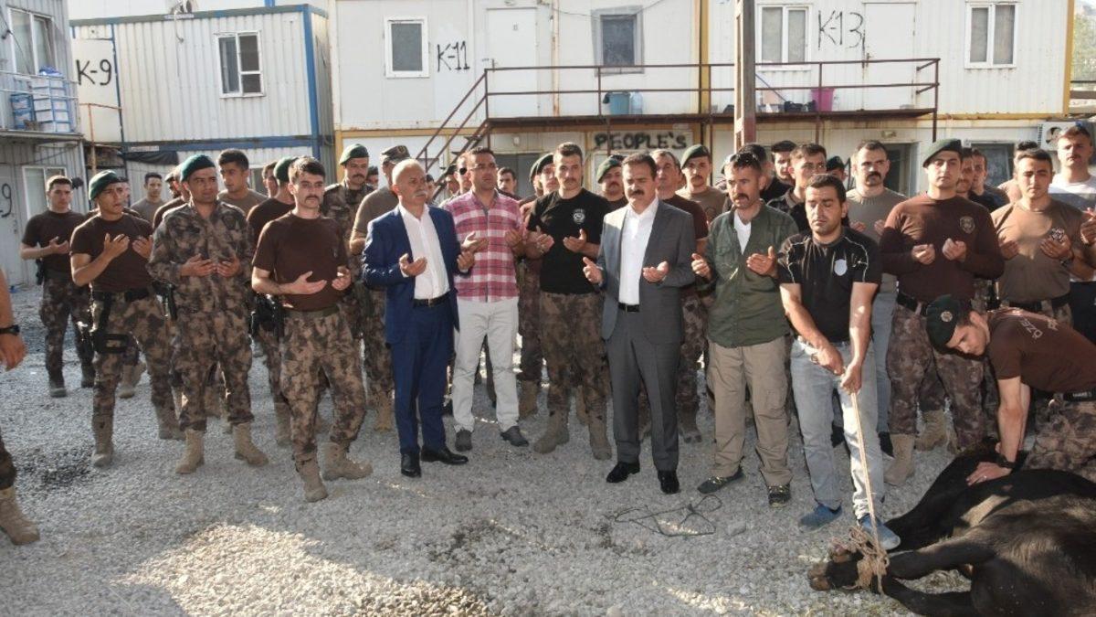 Polis Özel Harekat Şube Müdürlüğü bahçesinde gerçekleşen kurban kesimi programına Vali İdris Akbıyık, Cumhuriyet Başsavcısı Mustafa Balık, İl Emniyet Müdürü Süleyman Suvat Dilberoğlu, Polis Özel Harekat Şube Müdürü Şaban Bayar, emniyet müdür yardımcıları, şube müdürleri ve özel harekat personeli katıldı. Kurban kesiminin ardından şehitlerimiz ve güvenlik güçleri için dua edildi. Kesilen kurbanın etinin kentte tespit edilen maddi durumu iyi olmayan ailelere dağıtılacağı belirtildi.