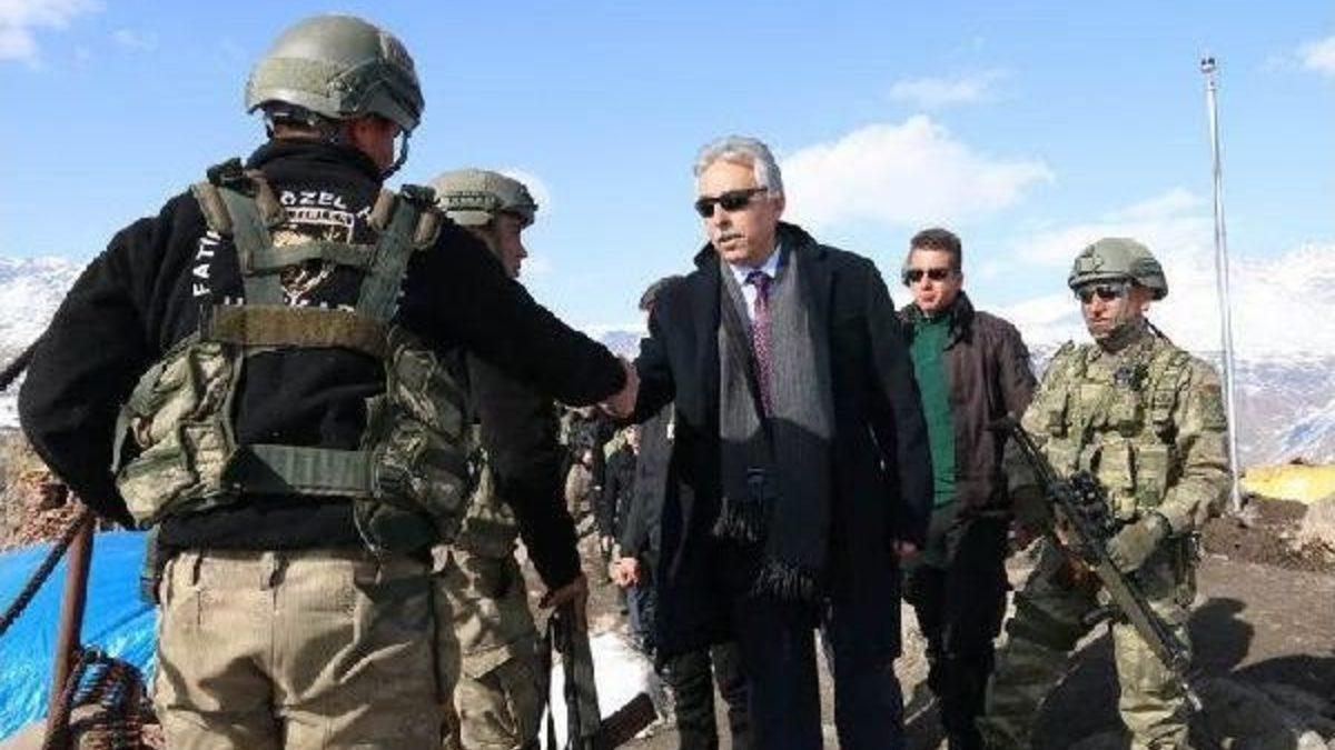 Behçet DALMAZ/HAKKARİ, Hakkari'nin Çukurca İlçesi'nin sıfır noktasında geçen yıl PKK'lı teröristlere yönelik gerçekleştirilen operasyonla temizlenerek üs bölgesi kurulan Kaletepe ve Dağbaşı Tepe'de, hudut nöbeti tutan Mehmetciğe Hakkari Valisi Cüneyit Orhan Toprak ve İl Jandarma Komutanı Tuğgeneral Ferdi Korkmaz sürpriz bir ziyaret gerçekleştirdi. 2 bin 200 rakımda ve teröristlerin geçen yıla kadar Türkiye'ye giriş noktası olan bölgede, Vali Orhan ve İl Jandarma Komutanı Tuğgeneral Kormaz'ı Çukurca 2'nci Hudut Tugay Komutan Yardımcısı Albay Mikail Çelik karşıladı. Üs bölgesinde bulunan komutanlardan bölge hakkında bilgi alan Vali Toprak, askerlerle bol bol sohbet etti.