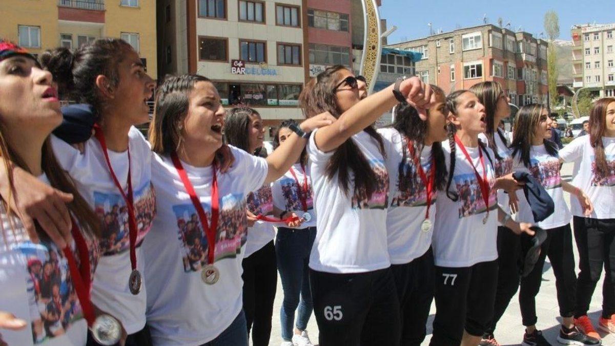 Nevşehir ve Malatya’da yapılan play-off müsabakalarında ilk ikiye girerek, gelecek sezon Kadınlar 1. Ligi’nde mücadele etme hakkı kazanan Hakkari Gücü Kadın Futbol Takımı, kentte büyük sevince neden oldu.Kadınlar 2. Ligi’nde mücadele eden Hakkari Gücü Kadın Futbol Takımı, 1. Lig’e yükseldi. Hakkari Gücü Kadın Futbol Takımı; Nevşehir ve Malatya’da yapılan play-off müsabakalarında ilk ikiye girerek, gelecek sezon Kadınlar 1. Ligi’nde kenti temsil etme hakkı kazandı. 1. Lig’e çıkmanın sevincini yaşayan Hakkari Gücü oyuncuları, sabah saatlerinde Hakkari’ye geldi. Otobüsten inerek ellerindeki kupa ile çarşı merkezinde yürüyüşe geçen futbolcular, “en büyük vali bizim vali, Ferdi Paşa sen bizim her şeyimizsin” gibi sloganlar attı.Sloganları ile çarşı merkezini inleten kadın futbolculara bazı vatandaşlar da alkışlarla destek verdi. Valiliğin önüne kadar yürüyen futbolcular, buradan da değişik sloganlar atarak kendilerine yardımcı olan bütün protokol üyelerine teşekkür etti.Futbolcuların yanına gelen sanatçı Yılmaz ve Mustafa Erdoğan’ın amcası Adil Erdoğan ise, sporcuları tebrik ederek başarıların devamını diledi.