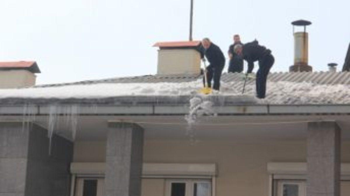 Hakkari’de çatılarda biriken kar yığınları temizlenmeye başlandı.Kentte etkili olan kar yağışı ve akabinde başlayan dondurucu soğuklar yerini güneşli havaya bıraktı. Kentin değişik noktalarındaki binaların çatı katlarındaki kar yığınları kendiliğinden inerken, güneş görmeyen çatılardaki karlar ise küreklerin yardımı ile temizlenmeye başlandı. Çarşı merkezindeki 3 katlı bir banka şubesinin çatısına çıkanlar, bellerine ip bağlayarak kar yığınlarını küreklerin yardımı ile temizlemeye çalıştılar.Düşen kar kütlelerinin caddede geçenlerin üzerine düşmemesi için de binanın ön kısmına güvenlik şeridi çekildi.Vatandaşlar ise, binaların güneş görmeyen çatı kesimlerinde biriken karların tehlike saçtığını ve temizlenmesi gerektiğini söylediler.