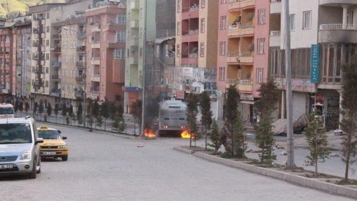 HAKKARİ (İHA) – Hakkari’de yola barikat kuran gruba polis, gaz bombasıyla müdahale ederek dağıttı.Hakkari’deki Meskan Dağı bölgesinde güvenlik güçleri ile PKK mensupları arasında çıkan çatışmada 1 piyade uzman çavuş ağır yaralanırken, 1 PKK’lı da öldürülmüştü. PKK’lının öldürülmesi ve bölgede yapılan kalekol ve askeri operasyonları protesto eden yüzü maskeli gruplar, Çevre Yolu Caddesi’ne barikat kurarak yolu trafiğe kapatmak isterken yoldan geçmekte olan bir sivil polis aracına da taş ve molotofkokteyli ile saldırdılar. Polis havaya ateş açarak oradan ayrılırken, daha sonra olay yerine gelen TOMA ve zırhlı araçlar gruba gaz bombası ve plastik mermi ile müdahalede bulundu. Göstericiler ise taş, molotofkokteyli ve ses bombası ile karşılık verdi. Bir süre devam eden olaylar, göstericilerin dağılmasıyla son buldu.