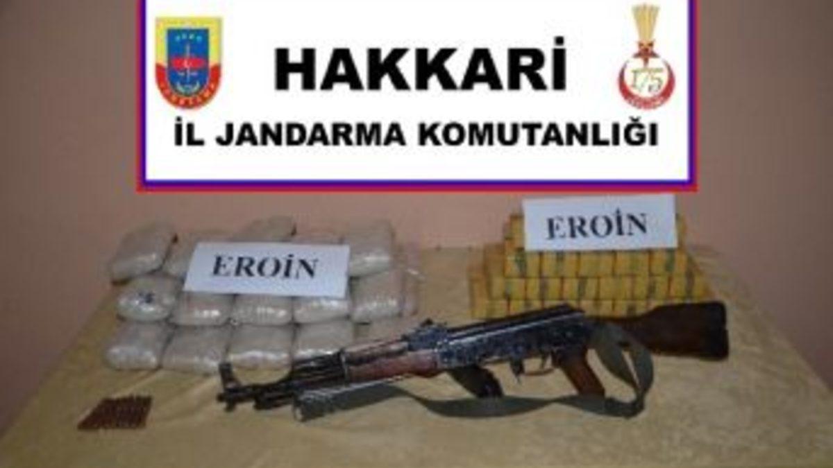 Hakkari’nin Yüksekova ilçesinde uyuşturucu ve silah ele geçirildi.Edinilen bilgiye göre, Hakkari İl Jandarma Komutanlığı tarafından yürütülen toplum destekli güvenlik hizmetleri kapsamında yapılan çalışmalar sonucu Hakkari Yüksekova ilçesi Kazan köyü kırsalında kaçakçılık yapan bir grup yapılan dur ihtarına uymadı. Bölgede yapılan aramada iki çuval içerisinde 26 kilo 34 gram eroin ile bir adet Kalaşnikof silah ve bu silaha ait bir adet şarjör ele geçirildi. Olay faillerinin tespit ve yakalanması çalışmalarının ise devam ettiği belirtildi.