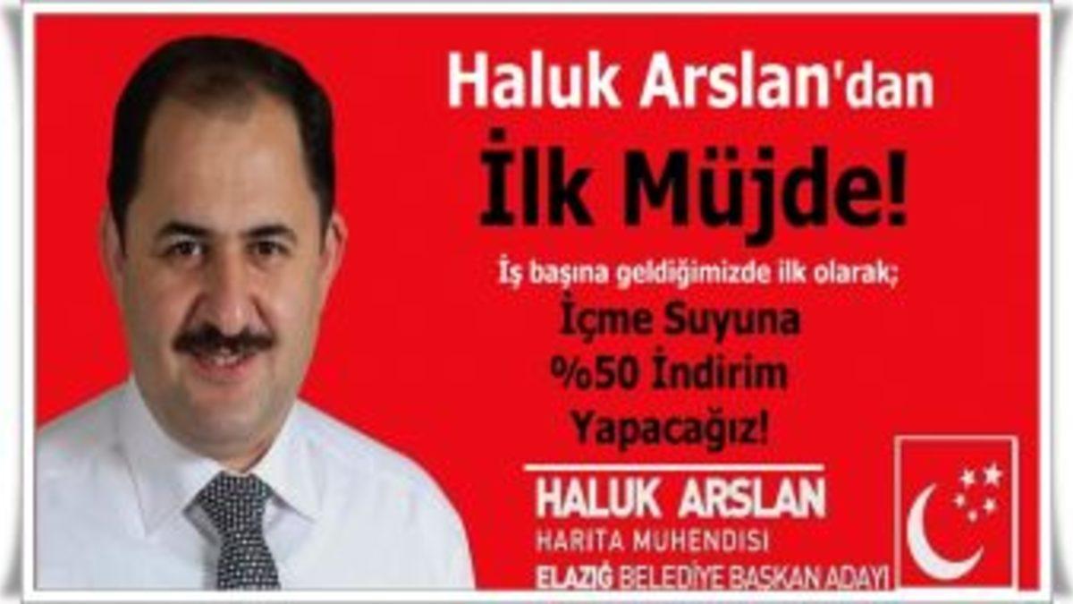 Arslan, yerel seçim müjdesini de dün yerel bir tv ekranlarında vererek, İş başına geldiklerinde ilk iş olarak Elazığ halkının kullandığı içme sularında % 50 indirim yapacaklarını ifade etti.