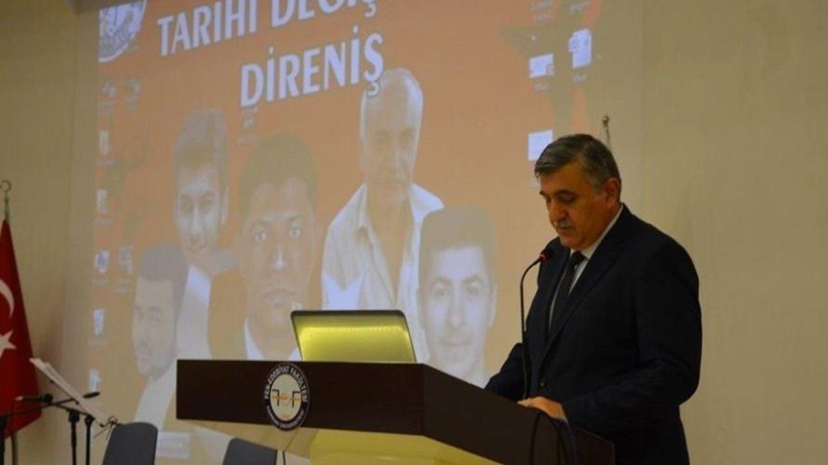 Harran Üniversitesinde, 15 Temmuz darbe girişimini konu alan “15 Temmuz Tarihi Değiştiren Direniş” konulu panel düzenlendi.Şanlıurfalı 15 Temmuz şehidi Mustafa Direkli’nin ailesi ve yakınları, Büyükşehir Belediyesi Başkan Vekili Mahmut Kırıkçı, Rektör Prof.Dr. Ramazan Taşaltın, rektör yardımcıları, dekanlar, öğretim elemanları ve öğrenciler katıldığı, Osmanbey Kampüsü Fen-Edebiyat Fakültesi Anfi Salonundaki panel, saygı duruşu, İstiklal Marşı ve Kur’an-ı Kerim tilaveti ile başladı.Panelin açılışında söz alan Harran Üniversitesi Rektörü Prof. Dr. Ramazan Taşaltın, şehitliğin önemini hatırlatarak, "Şehitler cennet karşılığında canlarını ve mallarını sattı. Bunlar ise mallarını ve canlarını makam için sattılar, Amerikan için sattılar, başkaları için sattılar” dedi. Açılış konuşmasının ardından 15 Temmuz şehitleri anısına salonda sela okundu. Rektör Prof. Dr. Ramazan Taşaltın, Şehit Mustafa Direkli’nin amcası Mehmet Direkli ve Yrd. Doç. Dr. Cüneyt Gökçe’nin panelist olduğu oturuma geçildi. Şehit Mustafa Direkli’nin amcası Mehmet Direkli, “Şehitler canlarını Allah için, vatan için, bayrak için verdiler. Bunun üzerine ekleyeceğimiz bir şey olamaz. Allah bu millete bir daha 15 Temmuzları yaşatmasın” derken gözyaşlarına hakim olamadı. Salonda bulunanlarda gözyaşlarına boğuldu. Darbelere giden süreci anlatan Rektör Taşaltın, “Darbe yapmaları için önce ortam oluşturulur. İnsanların hayatlarından bıktırılır. ‘Ya şu hükumet bir gitsin yerine kim gelirse gelsin’ dedirttiler. Darbe yapacak olan kadrolar ayarlanır. Daha sonra ABD, İngiltere ve NATO gibilerinden izin ve destek alınır. Yani 1960’dan beri yapılan ve girişilen tüm darbeler dış desteklidir” diye konuştu. Darbelerin vatanı yok etmek için dış güçlerce hep organize edildiğine dikkat çeken Yrd. Doç. Dr. Cüneyt Gökçe, “Fert olarak düşündüğümüz zaman insanların bir eve ihtiyacı var. Millet olarak da düşündüğümüz zaman bir vatana ihtiyacımız var. Huzur ve emniyet için evsiz yaşamanın mümkün olmadığı gibi vatansız yaşamakta mümkün değil. Bizler dün Malazgirt’te Sakarya’da Çanakkale’de vatanımız, bayrağımız ve ezanımız için kendimizi nasıl feda ettiysek, 15 Temmuzda da bu duygular için kendimizi feda etmekten çekinmedik” diye konuştu.Yaklaşık iki saat devam eden panel sonunda üniversite idarecileri ve şehit yakınları birlikte fotoğraflar çekildi. Etkinlik, üniversite merkezi kafeteryada şehit yakınları onuruna verilen akşam yemeği ile sona erdi.