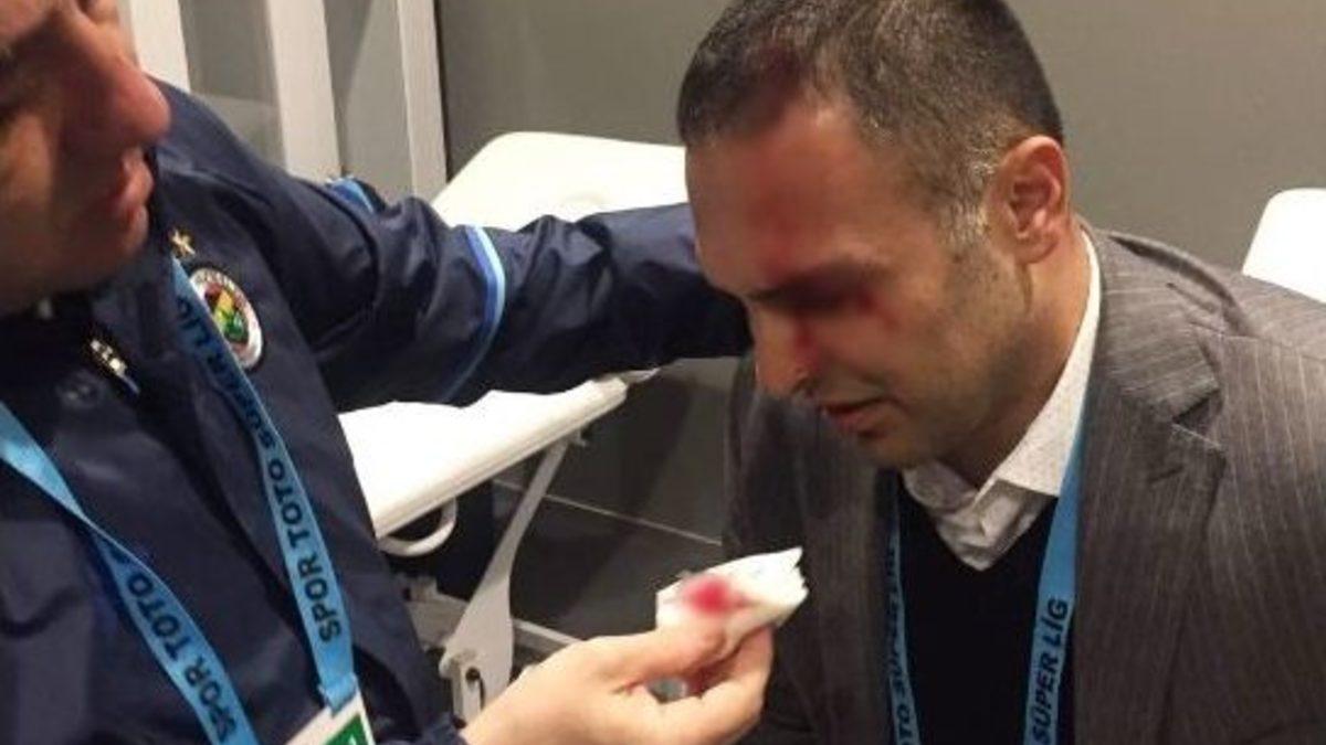 Fenerbahçe İdari Menajeri Hasan Çetinkaya’nın kafası yarıldı. Karşılaşmanın bitiş düdüğüyle birlikte soyunma odasına yönelen Çetinkaya’ya tribünden gelen bir cisim isabet etti.Ziraat Türkiye Kupası’nda Fenerbahçe’nin Beşiktaş’ı deplasmanda mağlup ettiği karşılaşmanın ardından tribünler sahaya yabancı cisim atmaya başladı. Sahaya atılan cisimlerden birisi, Fenerbahçe İdari Menajeri Hasan Çetinkaya’nın başına isabet etti. Kaşında açılma olan Çetinkaya’ya ilk müdahale, Fenerbahçe Sağlık Ekibi tarafından takımın soyunma odasında yapıldı.