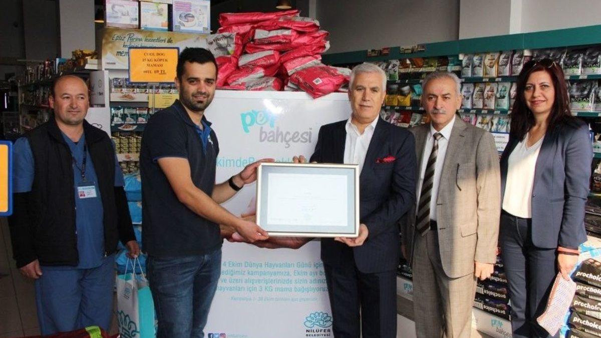 Nilüfer Belediyesi’nin öncülüğünde toplanan 2 ton mamayla Hayvan Bakım ve Tedavi Merkezi’ne getirilen hasta ve güçten düşmüş can dostları beslenecek.Bursa’da 4 Ekim Dünya Hayvanları Koruma Günü dolayısıyla Nilüfer Belediyesi ve Pet Bahçesi firması iş birliğiyle gerçekleştirilen ve ekim ayı boyunca devam eden #EkimdeBarınaklarBaşkadır kampanyasında 2 ton mama toplandı. Mamalar Nilüfer Belediyesi’nin Hayvan Bakım ve Tedavi Merkezi’ne getirilen hasta ve güçten düşmüş can dostların tedavi süreçlerinde besin takviyesi olarak kullanılacak.Projeye katılan Pet Bahçesi firmasının 29 Ekim Mahallesi’nde bulunan merkezini ziyaret eden Nilüfer Belediye Başkanı Mustafa Bozbey, desteklerinden dolayı firma sahibi Veteriner Hekim Samet Aydın’a teşekkür belgesi verdi. Başkan Bozbey, “Sizin sayenizde sokak hayvanlarına yönelik inanılmaz bir katkı sunmuş oluyoruz. Emek veren herkesi tebrik ediyorum” dedi.