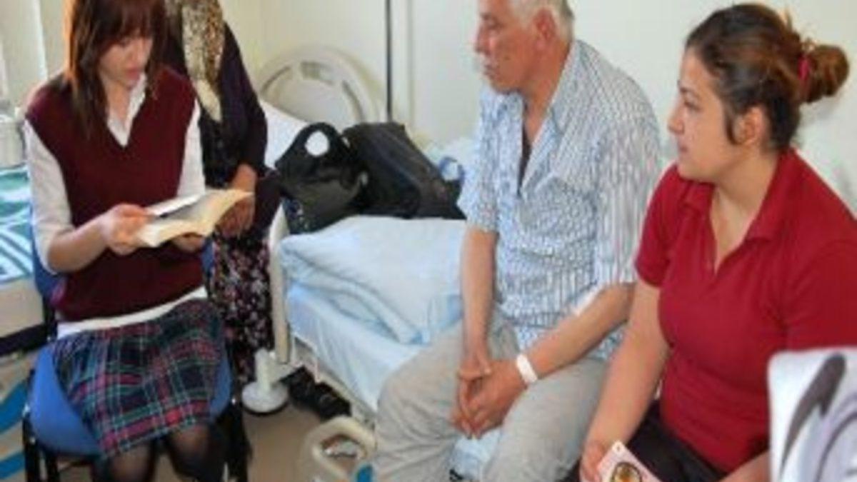 Genel Cerrahi servisinde yatarak tedavi gören Hasan Sağlam (65) liseli öğrencilerin haftanın bir günü gelip başında hikaye kitabı okumasından son derece memnun olduğunu bildirdi. Okunan hikaye kitabı ile moral bulduğunu ifade eden Hasan Sağlam, “Okuma gününü iple çekiyorum. Kızlarımız bize her hafta değişik hikaye kitapları okuyorlar. Zevkle dinliyorum. Kıssadan hisseler alıyorum” dedi.