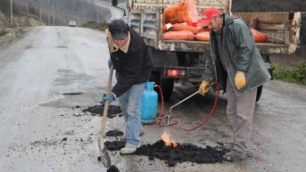 Bartın Belediyesi Fen İşleri Müdürlüğü’ne bağlı ekipler Kadın Doğum ve Çocuk Hastanesi yolundaki çukurları soğuk asfalt malzemesi ile onarıyor.