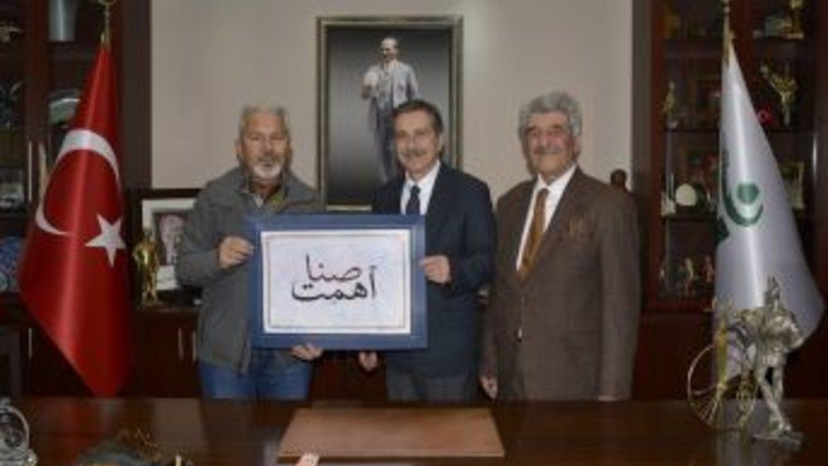 Tepebaşı Belediye Başkanı Dt. Ahmet Ataç, sanatçı Abdullah İpek’i makamında kabul etti.Osmanlı sanatlarından hat, minyatür, tezhip ve ebru gibi branşları üzerinde çalışmalar yürüten Abdullah İpek, ziyarette Başkan Ataç’a sanatsal faaliyetleri hakkında bilgiler aktardı. İpek ziyaretinde Başkan Ataç’a kendisinin ve eşi Sena Ataç’ın hat sanatıyla Osmanlıca adlarını yazdığı eseri de hediye etti. Ziyaretten ve hediyesinden ötürü duyduğu memnuniyeti ifade eden Başkan Ataç da geleneksel sanat dallarının gelecek nesillere aktarılmasının önemine dikkat çekerek, Abdullah İpek’e çalışmalarında başarılar diledi.Ziyaret, çektirilen hatıra fotoğrafı ile sona erdi.