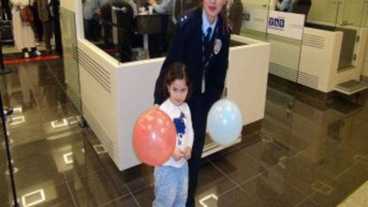 Havalimanında polislerden çocuklara 'balonlu' sürpriz