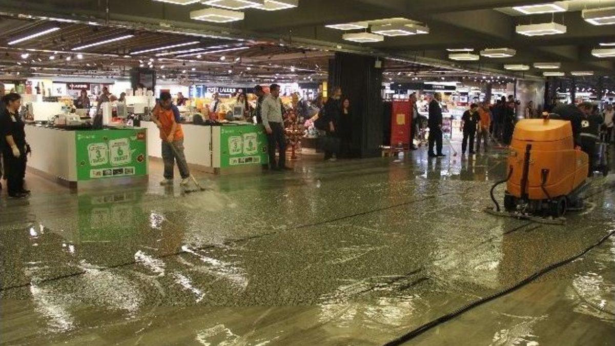 Atatürk Havalimanı dış hatlar arındırılmış salonu, yangın söndürme borusunun patlaması üzerine su baskınına uğradı. Yerler su altında kalırken, havalimanı çalışanları ve temizlik ekipleri suyu tahliye etti.Atatürk Havalimanı akşam saatlerinde su baskınıyla karşılaştı. Dış hatlar gidiş katı pasaport arkası tarafında kalan arındırılmış salonda yapılan bir tadilat esnasında yangın söndürme sistemlerinin borularının delinerek patlaması ortalığı bir anda suyla doldurdu. Yolcuların şaşkın bakışları arasında bir anda yerler suyla dolarken havalimanı temizlik ekipleri ve çalışanları ellerinde süpürgeler ve suyu emen makinelerle suları tahliye etmek için çabaladı. Yolcular ise tahliye çalışmalarını ve yerlerde biriken suları fotoğraf ve video çekerek görüntüledi. Yaklaşık 40 dakikalık bir çalışmanın ardından su tahliye edilirken, çalışanlar da rahat bir nefes aldı.