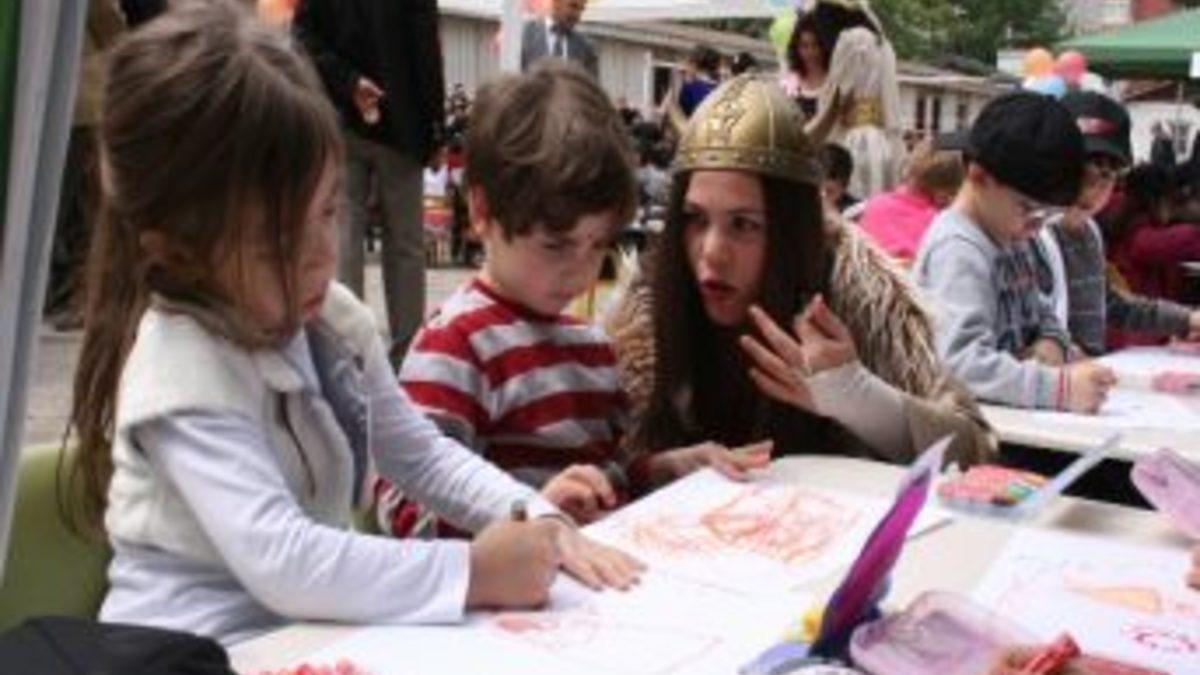 Ardından çocuklar hayallerini kağıda döktüler. Miniklere danışmanlık yapan Kız Teknik ve Meslek Lisesi öğrencilerinin ilginç kostümleri de dikkat çekti.