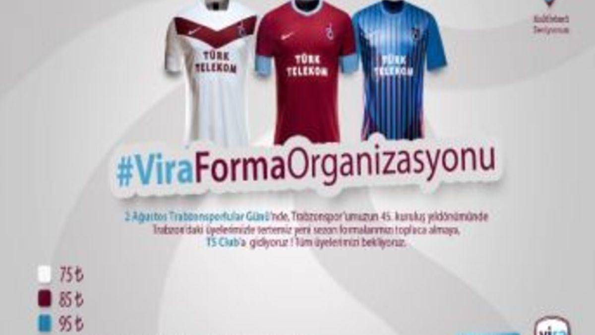 Trabzonspor'un önde gelen taraftar oluşumlarından Vira, Trabzonspor’un kuruluşunun 45. yıl dönümü ve ayrıca Trabzonsporlular Günü olarak kutlanan 2 Ağustos'ta yeni sezon formalarını yapılacak organizasyonla toplu olarak satın alarak kulübe destek verecek.