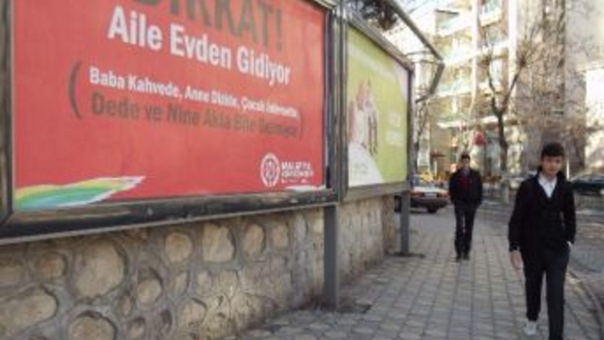 Son yıllarda boşanmalarda artış olması, madde kullanımının gittikçe artması, özellikle çocuklarda internet kullanımının çok fazla olmasından dolayı ailede yaşanan sıkıntılar bilboardlara yansıtıldı.Malatya Kent Konseyi, 2014 yılını ‘Hazinemiz Ailemiz’ ilan etmesi nedeniyle birçok etkinlikler düzenleneceği bildirildi.Şehir merkezindeki bilboardlara asılan afişte, ‘Aile evden gidiyor. Baba kahvede, anne dizide, çocuk internette. Dene ve nine akla bile gelmiyor’ ifadeleri yazıyor.Kent Konseyi Genel Sekreteri Ali Yıldırım, 2014 yılını ‘Hazinemiz Ailemiz’ ilan etmelerini değerlendirirken, son 10 yılda yaşadığımız coğrafyaya yakışmayacak sevgili cinayetleri, anne- baba cinayetleri gibi birçok olumsuz eylemin de yaşandığını ve bu yaşanan olumsuzlukların aile kavramının içini boşalttığını belirtti.2014 yılında ailenin önemini ortaya koymak için ‘Hazinemiz Ailemiz’ projesini başlattıklarını söyleyen Yıldırım, “Bizlerin en büyük hazinesi ailesi iken en çok çalınan değerimiz yine ailemiz olmaktadır” dedi.Yıldırım, bu kapsamda Genel Sekreterlik olarak bir yıl boyunca aile temalı birçok etkinlik ve çalışma yapacaklarını, kent merkezinin belirli noktalarına özellikle anne, baba, eş, çocuk ve akrabalara dikkat çekmek için bilboardlar astıklarını kaydetti.