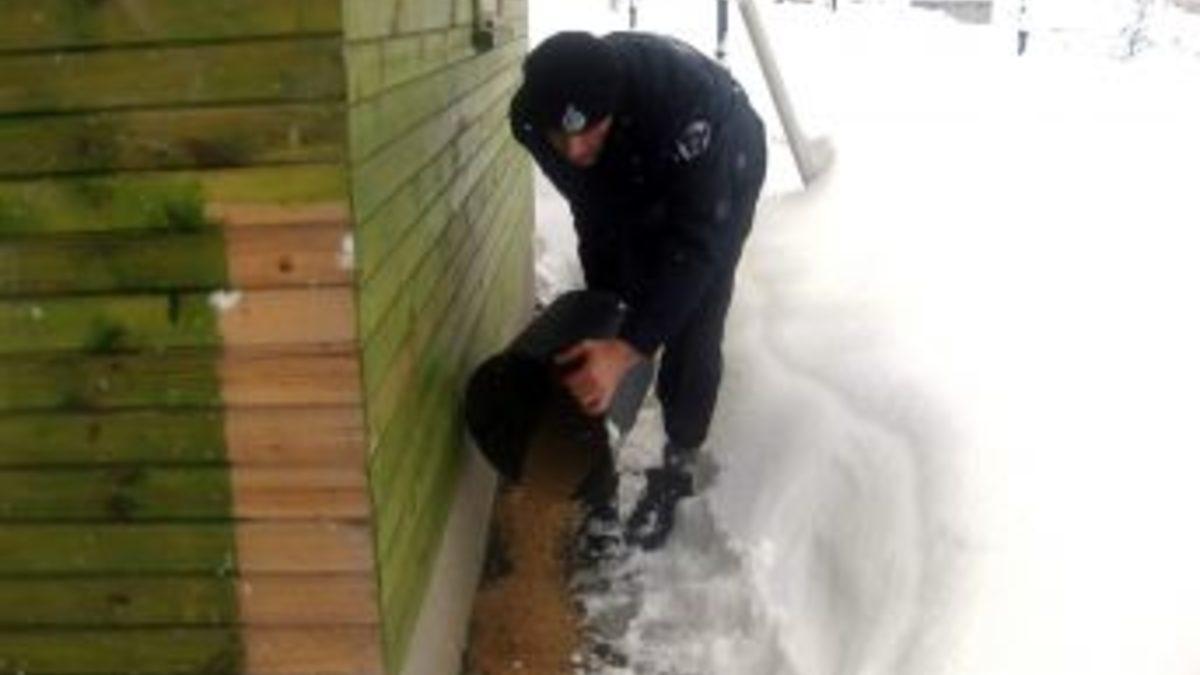 Sakarya'nın Hendek ilçesinde yoğun kar yağışı nedeniyle yiyecek sıkıntısı çeken kuşlar için ormanlık alanlara yem bırakıldı.