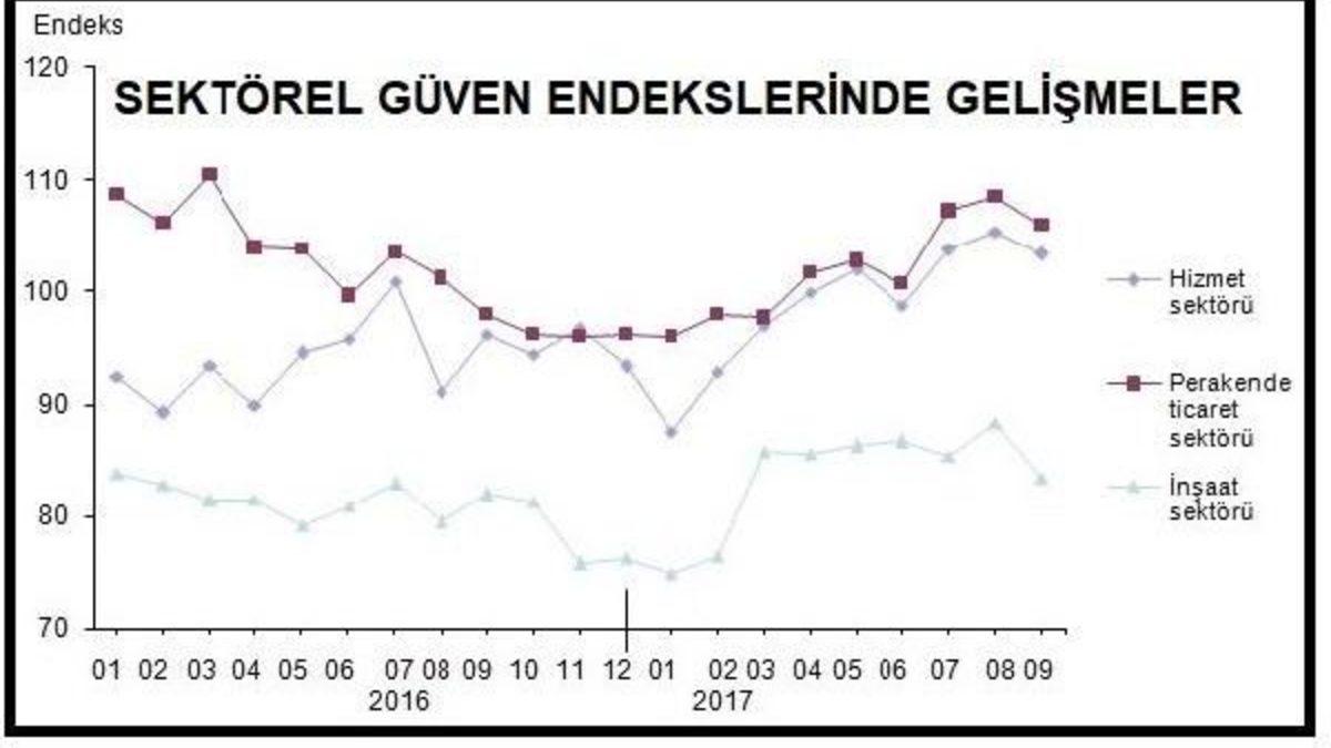 - Hizmet, perakende ve inşaatı kapsayan sektörel güven endeksleri Eylül ayında, tüm sektörlerde birden gerilese de, hizmet ve perakendede "iyimser", inşaatta da "kötümser" düzeylerinde kaldılar.