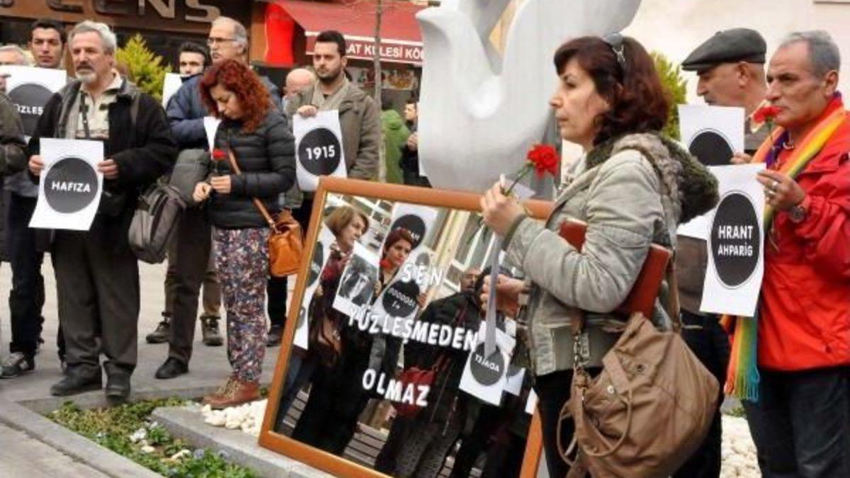 Burak GEZEN/ÇANAKKALE, Kendilerine 'Hrant'ın arkadaşları' adını veren 40 kişilik grup, ölümünün 8'inci yıldönümünde Hrant Dink'i anmak ve mahkeme sürecinin sonuçlanmamasına tepki göstermek amacıyla Saat Kulesi önünde toplandı. Grup yanlarında getirdikleri üzerinde 'Sen yüzleşmeden olmaz' yazılı ayna ile anma törenine katıldı. Grup, ellerinde 'Soykırım', 'Adalet', '1915', 'Vicdan', 'Hafıza' ve 'Hrant Ahparig Anma töreninin ardından grup, Saat Kulesi'nin kapısına Hrant Dink fotoğrafları, kırmızı karanfil ile ellerindeki dövizleri bıraktı. Sessiz bir şekilde gerçekleşen anma töreninin ardından dağıtılan basın bildirisinde is, "Türkiye bir bütün olarak geçmişle yüzleşmeli bunun için bir hakikat komisyonu kurumalıdır. İnanıyoruz ki, Hrant Dink cinayeti dahil işlenen binlerce faili meçhul cinayet ancak bir hakikat komisyonu marifeti ile açığa çıkarılabilir. Ancak anlaşılmaktadır ki, siyasal iktidarın hakikat komisyonu kurmaya cesareti bulunmamaktadır. Bu gerçeğin anlaşılması toplumsal yüzleşme için gerekli bütün adımların atılması gerekir. Biz bitti demeden bu dava bitmez demiştik" ifadelerine yer verildi.