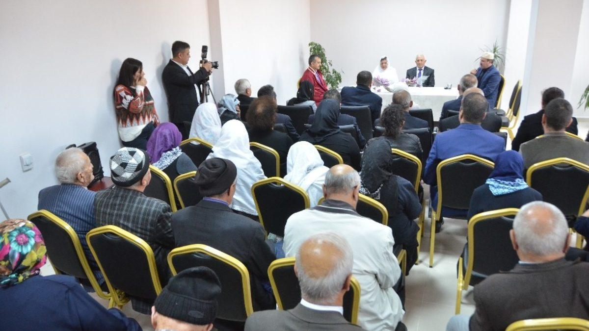 Hiç evlenmeyen ve geçirdiği şeker hastalığı sebebiyle 7 yıl önce görme yetisini kaybeden 65 yaşındaki Fatma Karasu ile 10 yıl sonra ikinci baharını yaşayan 63 yaşındaki Cebrail Özdemir, nikâh masasına taşıdıkları birlikteliklerinde Kur’an-ı Kerim tilaveti verilerek, dualar edildi. Kıyılan nikâhın ardından Vali Arslantaş ve Eşi çiçeği burnundaki çiftin evlilik yüzüklerini takarak, evlilik cüzdanlarını takdim ettiler.