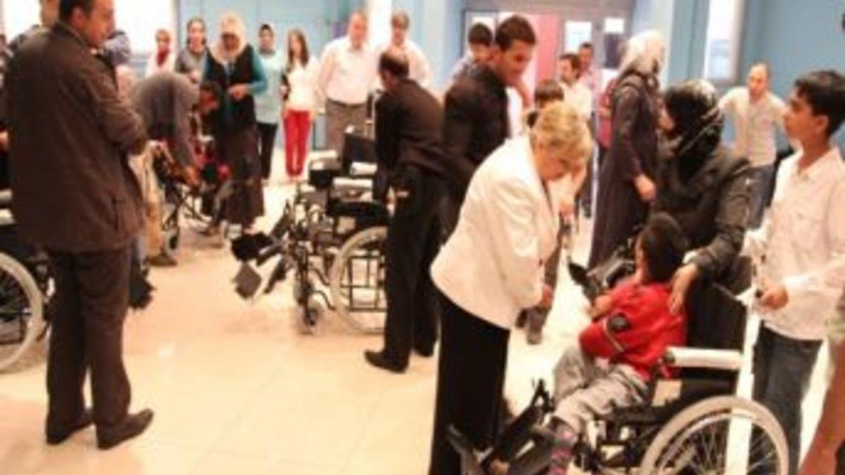Konuşmaların ardından İbrahim Çeçen Vakfı Müdürü Dr. Meral Dinçer tarafından 5 engelliye tekerlekli sandalye dağıttı.