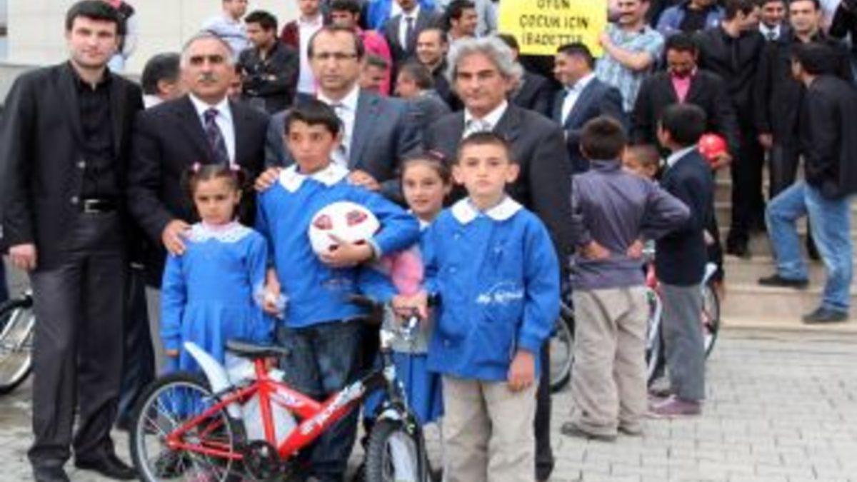Konuşmalar sonrası bisiklet, futbol topu ve flütler öğrencilere hediye edildi.