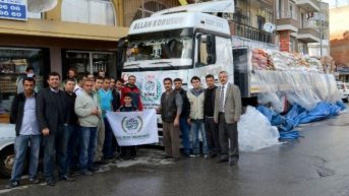 İHH İnsani Yardım Vakfı’nın Türkiye genelinden "Komşuluk Hakkı İçin" ve "Sana İhtiyacım Var" sloganlarıyla başlatılan kampanya dahilinde Suriye’ye yardım TIR'ları bir bir yola çıkıyor. Aydın ilinin ilk resmi TIR'ı Söke’den Suriye’ye yola çıktı.İHH İnsani Yardım Vakfı’nın Söke gönüllüleri Cengiz Taş, İsmet ve Mithat Samav öncülüğünde Söke’de yapılan bir haftalık çalışma kapsamında bir tır dolusu yardım malzemesi toplandı. Yaklaşık 28 tonluk yardım malzemesi ağırlıklı olarak gıda maddelerinden oluşurken, yardım malzemeleri içerisinde battaniye ve giyim eşyalarının da bulunduğu belirtildi. Söke’de kısa bir süre çalışma yapılmasına rağmen beklenenin çok üzerinde yardım malzemesinin toplandığına dikkat çeken İHH İnsani Yardım Vakfı’nın Söke gönüllüleri, katkı sağlayan herkese teşekkür ettiler.Malzemeler TIR'a yüklenmesinin ardından yapılan dua ile yola çıkarken, Söke’den yola çıkan yardım TIR'ının Suriye’de Cilvegözü ile Reyhanlı arasındaki tampon bölgeye ulaşacak.
