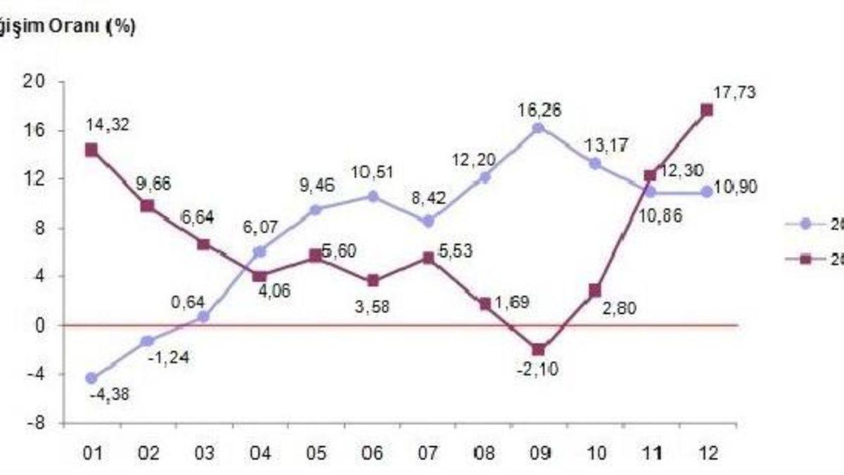 – Döviz kurlarındaki hızlı yükselişin etkisiyle, Türkiye'nin ihraç mallarının fiyatları bir yılda yüzde 17.7 arttı. Fiyatlardaki hızlı artışa karşılık, Türkiye’nin